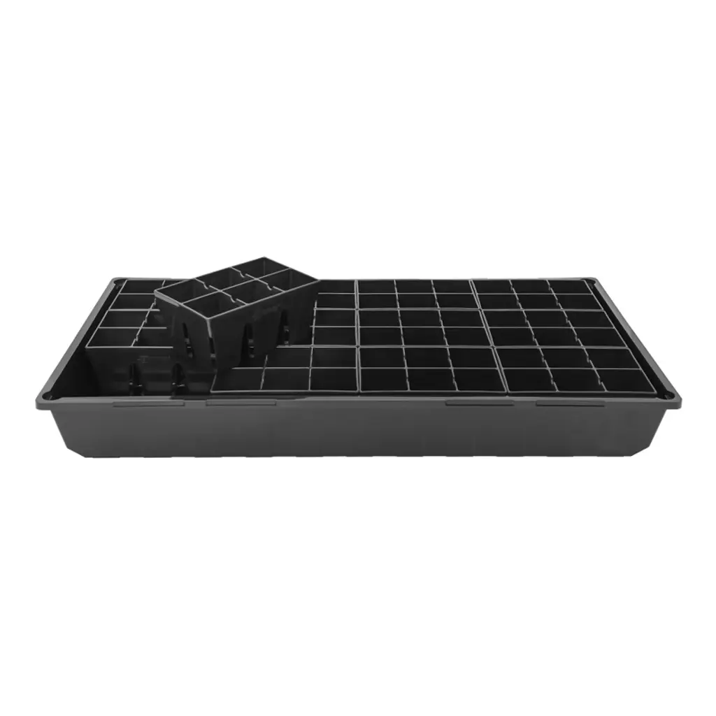 SUNPACK 6-Cell MEGA Tray Insert Squares are made from premium Food-Grade, and BPA-Free plastic. 12 inserts fit into a standard 1020 (10in x 20in) tray. These inserts provide 6 individual cells for starting seeds or cutting and allow them to grow perfectly well overtime! SUNPACKs trays are made from durable and reusable materials. These inserts allow for easy transplanting of seedlings and cuttings. The inserts come with holes which allow and promote healthy root growth.