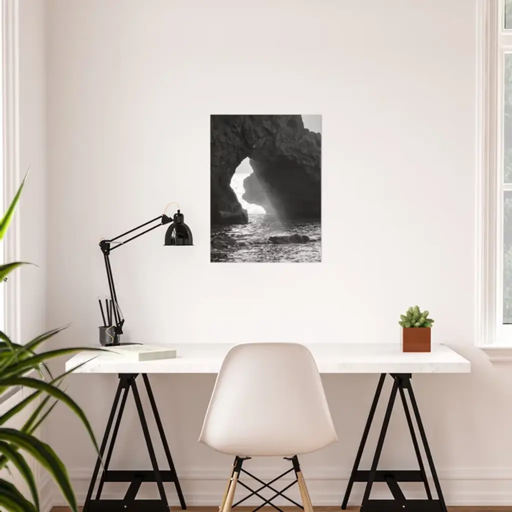 Sunrays Through The Arch. Del Medio Beach. At Sunrise. Bw Poster