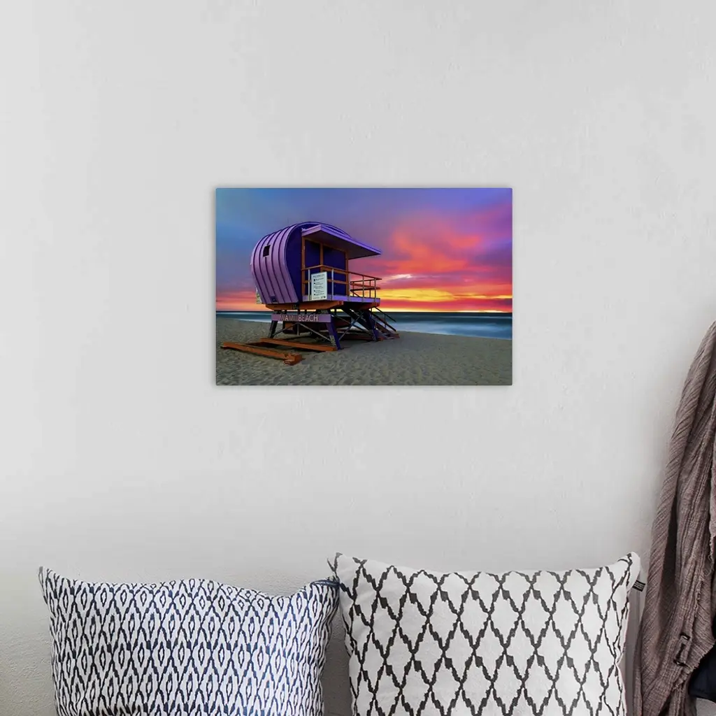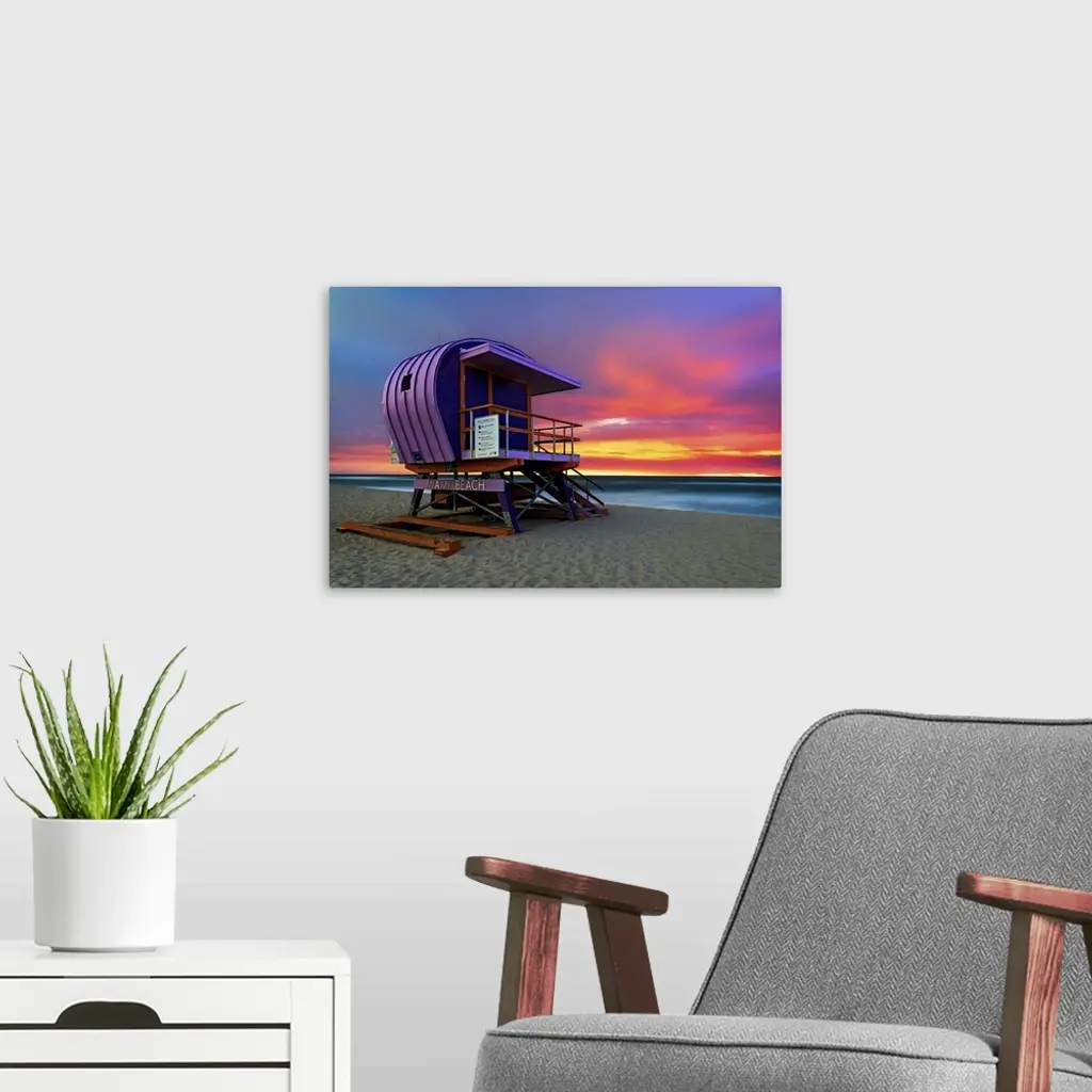 BGarish colors paint the clouds above Miami Beach's retro 17th Street lifeguard station during a spectacular sunrise.