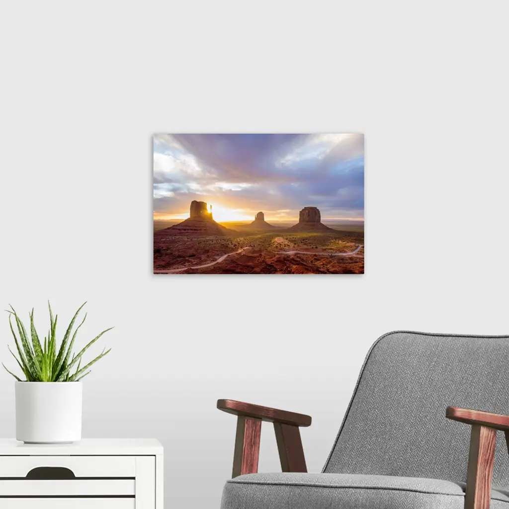 Sunrise At The Mittens And Merrick Buttes In Monument Valley, Arizona