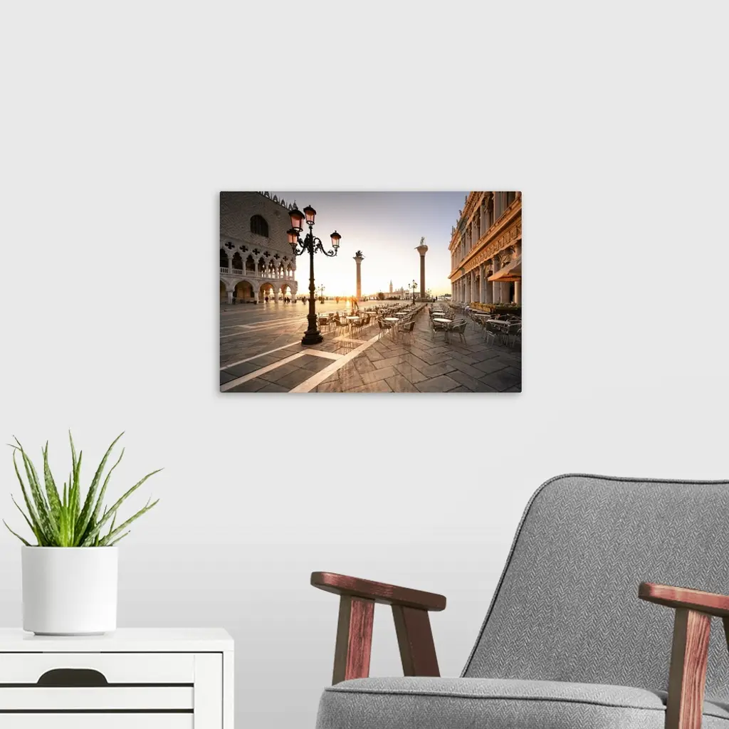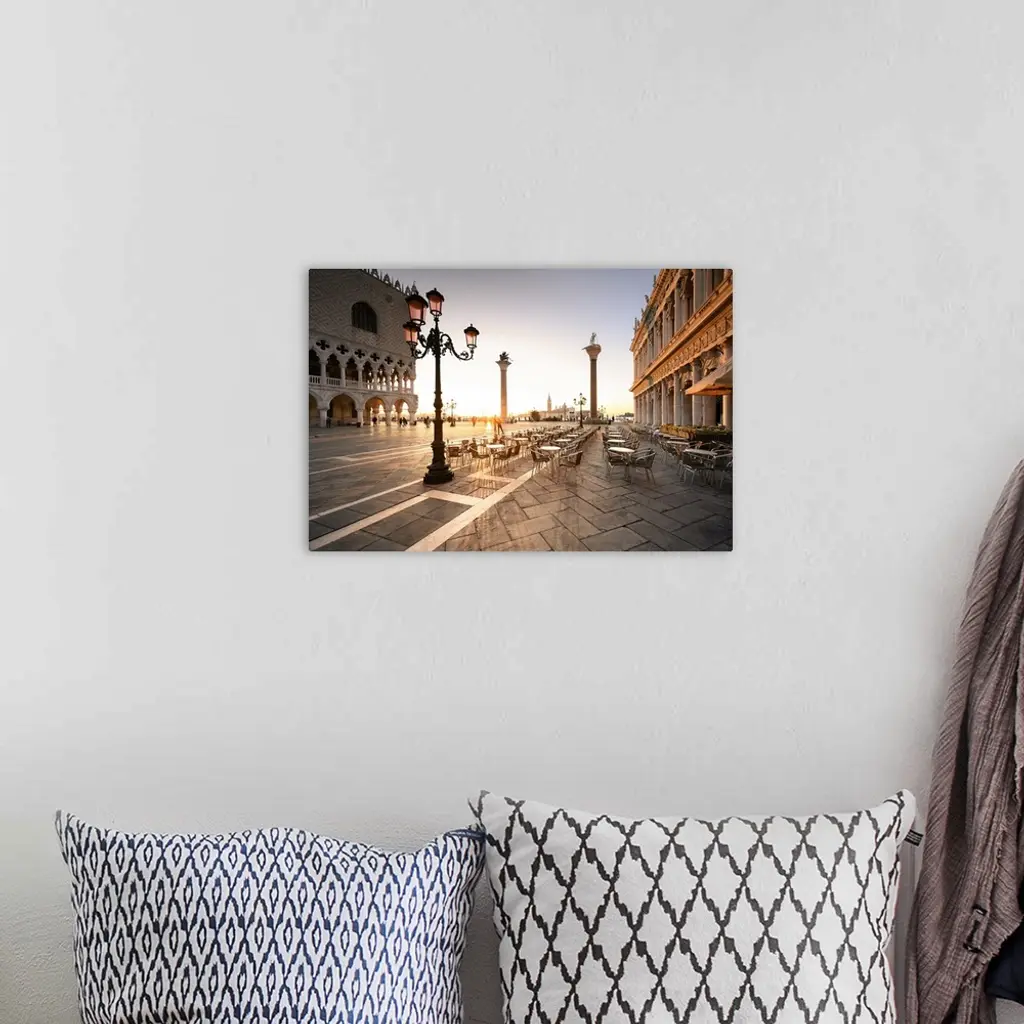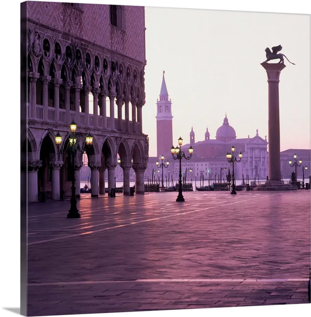 Sunrise In San Marco Square, With San Giorgio Church On The Background, Venice, Italy
