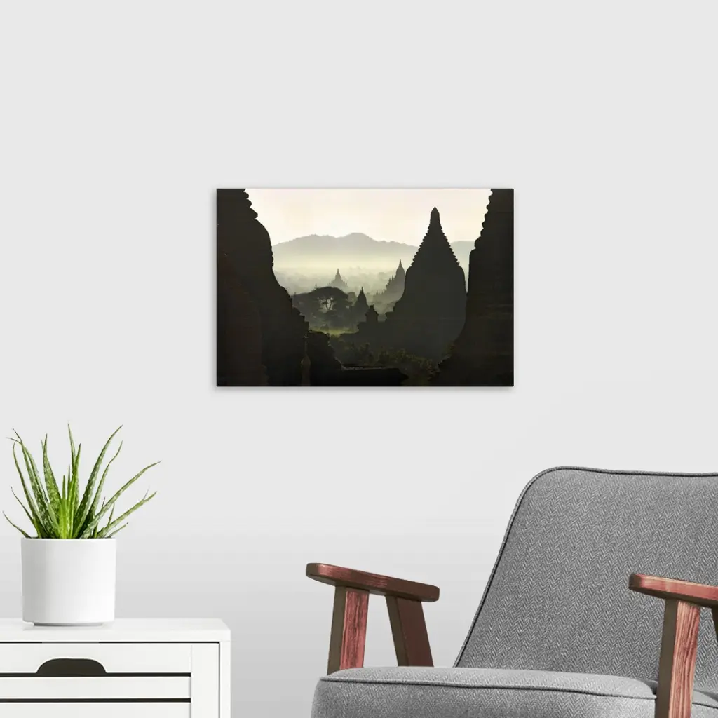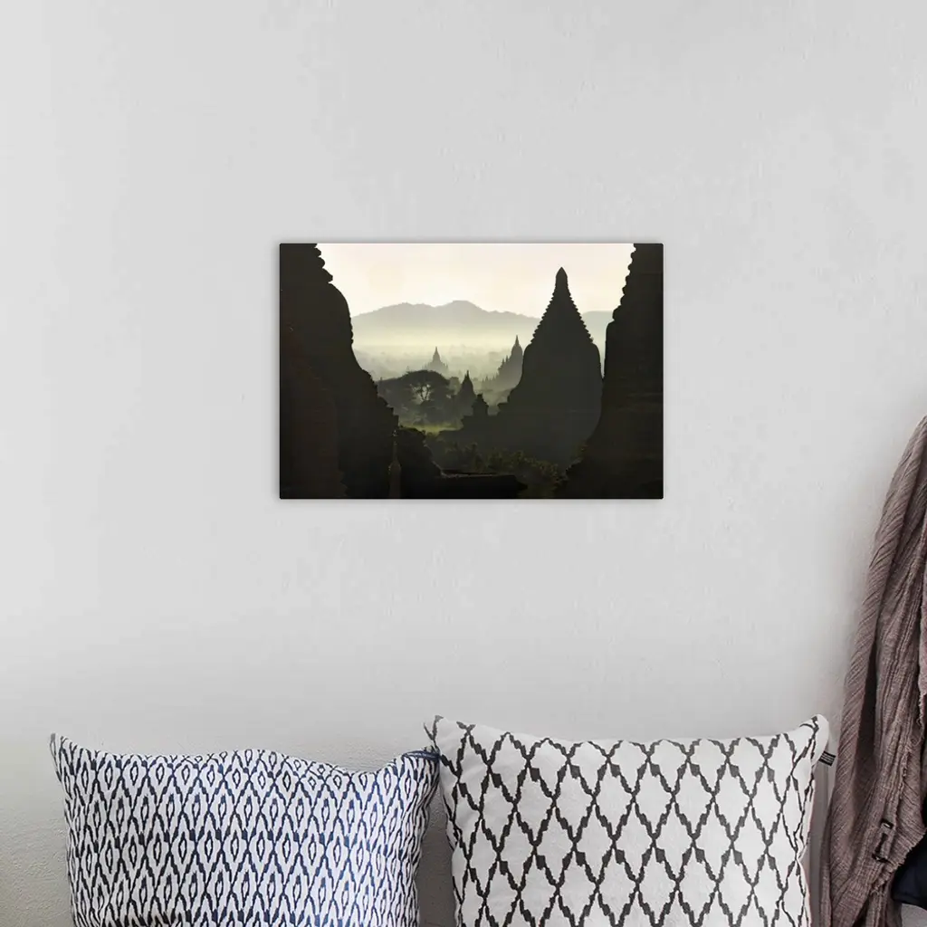 Sunrise over the temples of Bagan, Burma wall art for home and office decor. Discover canvas art prints, photos, mural, big canvas art and framed wall art in GreatBigCanvas.com's varied collections.