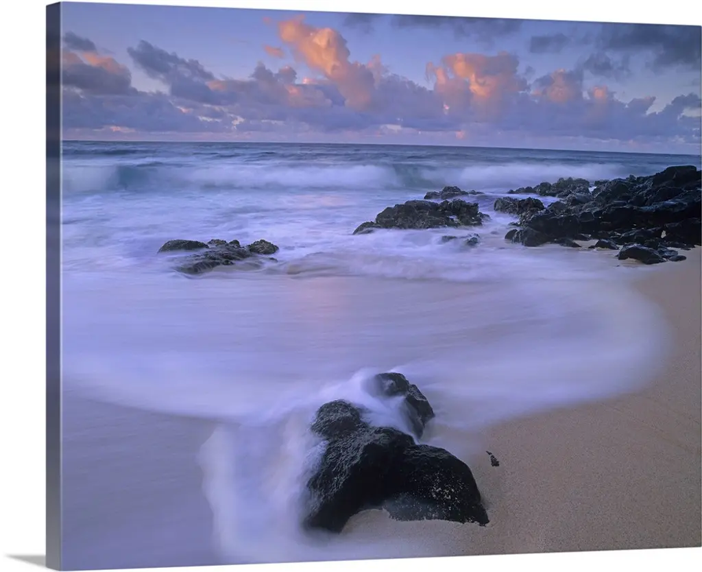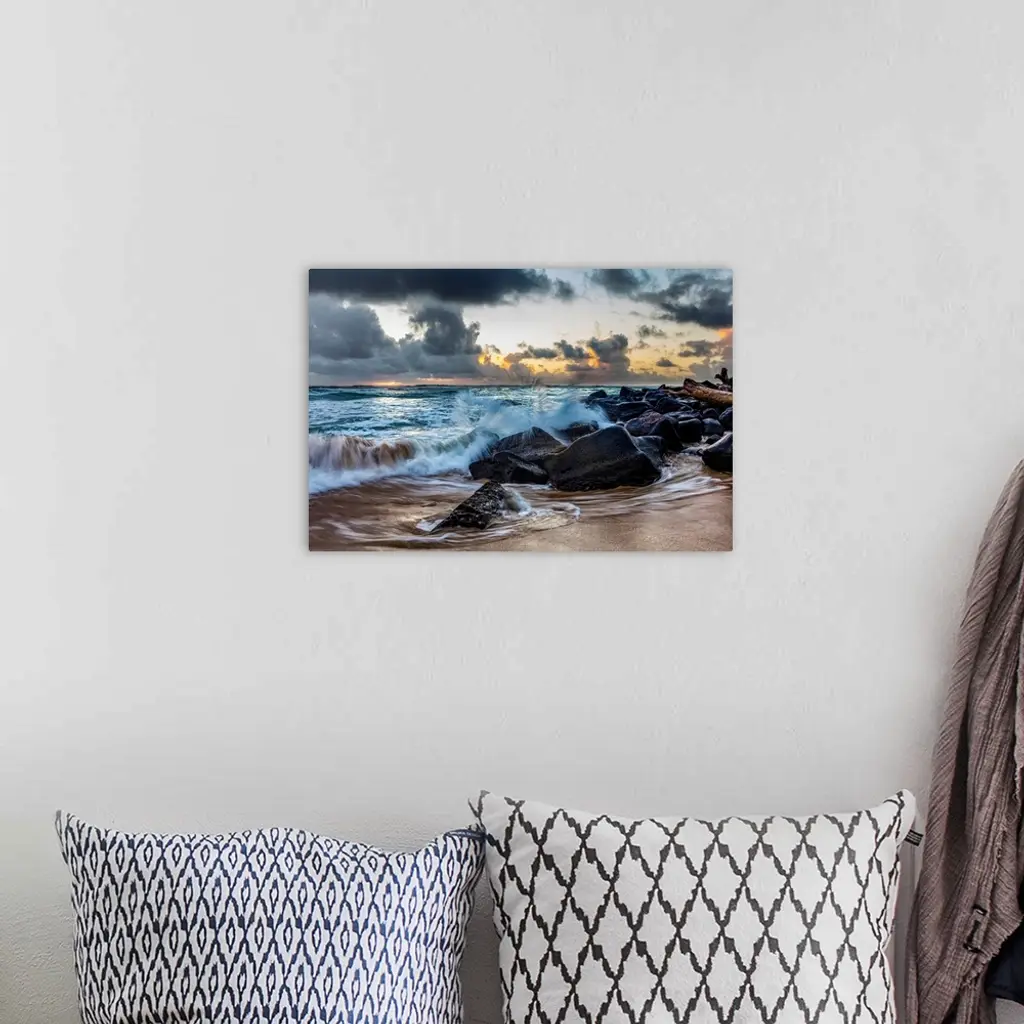 Sunrise Through The Clouds Over The Pacific Ocean, Lydgate Beach, Kapaa, Kauai, Hawaii
