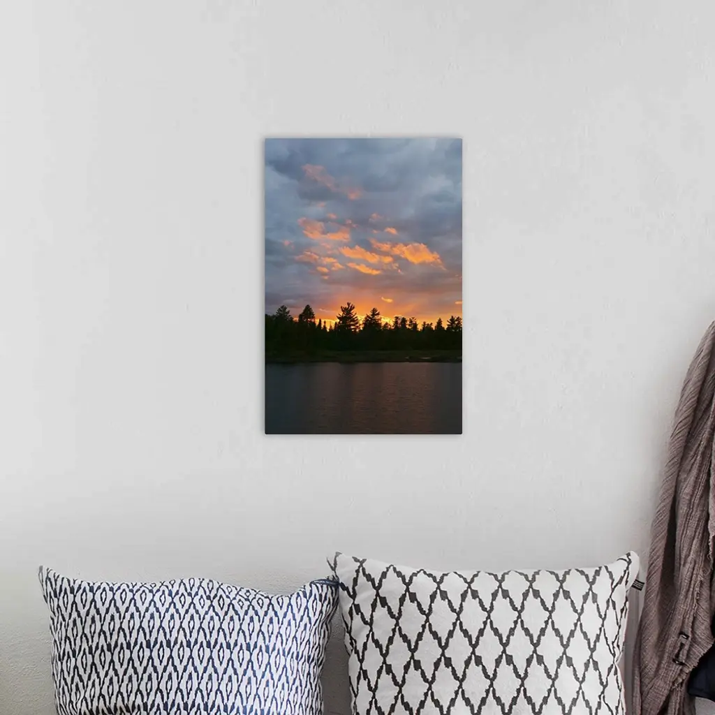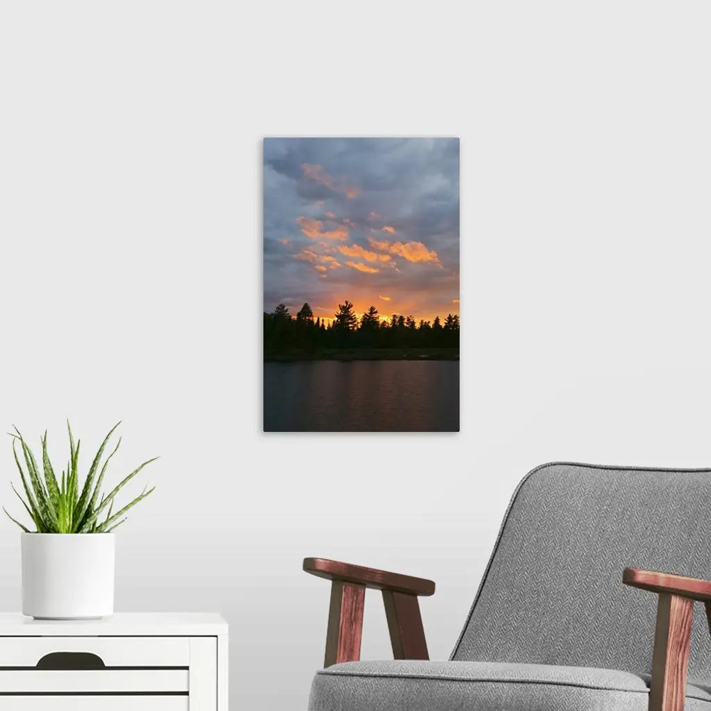 Sunset behind silhouetted forest, Lake Three, Boundary Waters Canoe Area Wilderness, Minnesota wall art for home and office decor. Discover canvas art prints, photos, mural, big canvas art and framed wall art in GreatBigCanvas.com's varied collections.