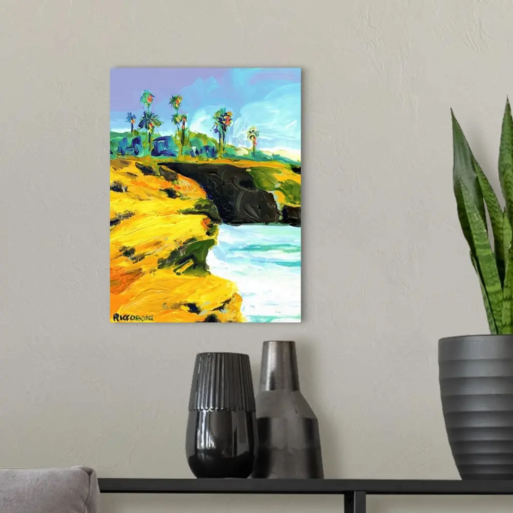 Sunset Cliffs Ocean Beach, on Point Loma in San Diego California. Acrylic on canvas by RD Riccoboni.
