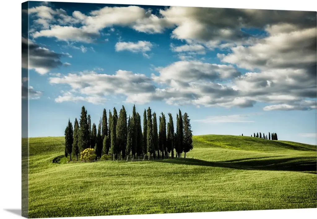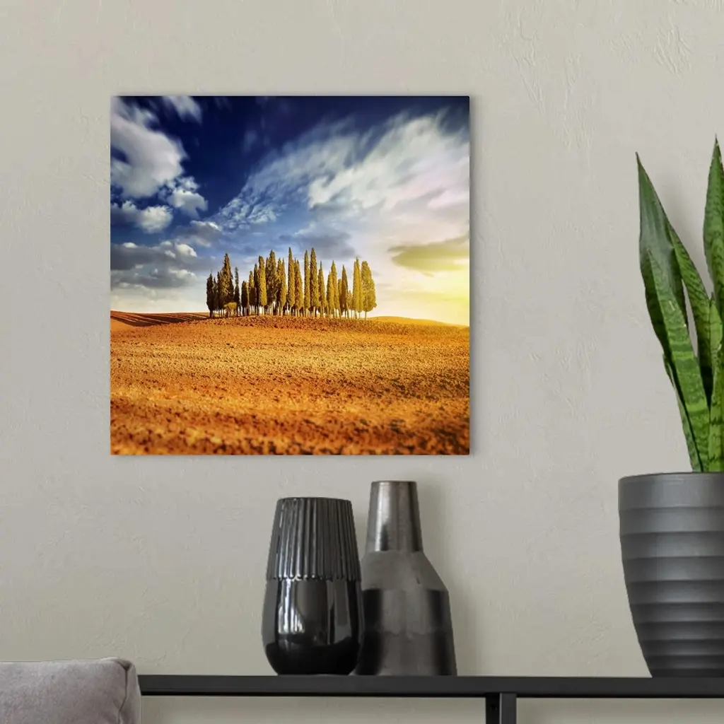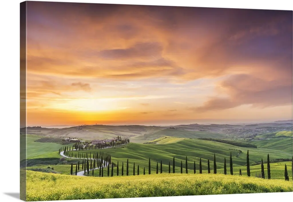 Sunset In A Golden Field With A Row Of Cypress Trees, Italy, Tuscany