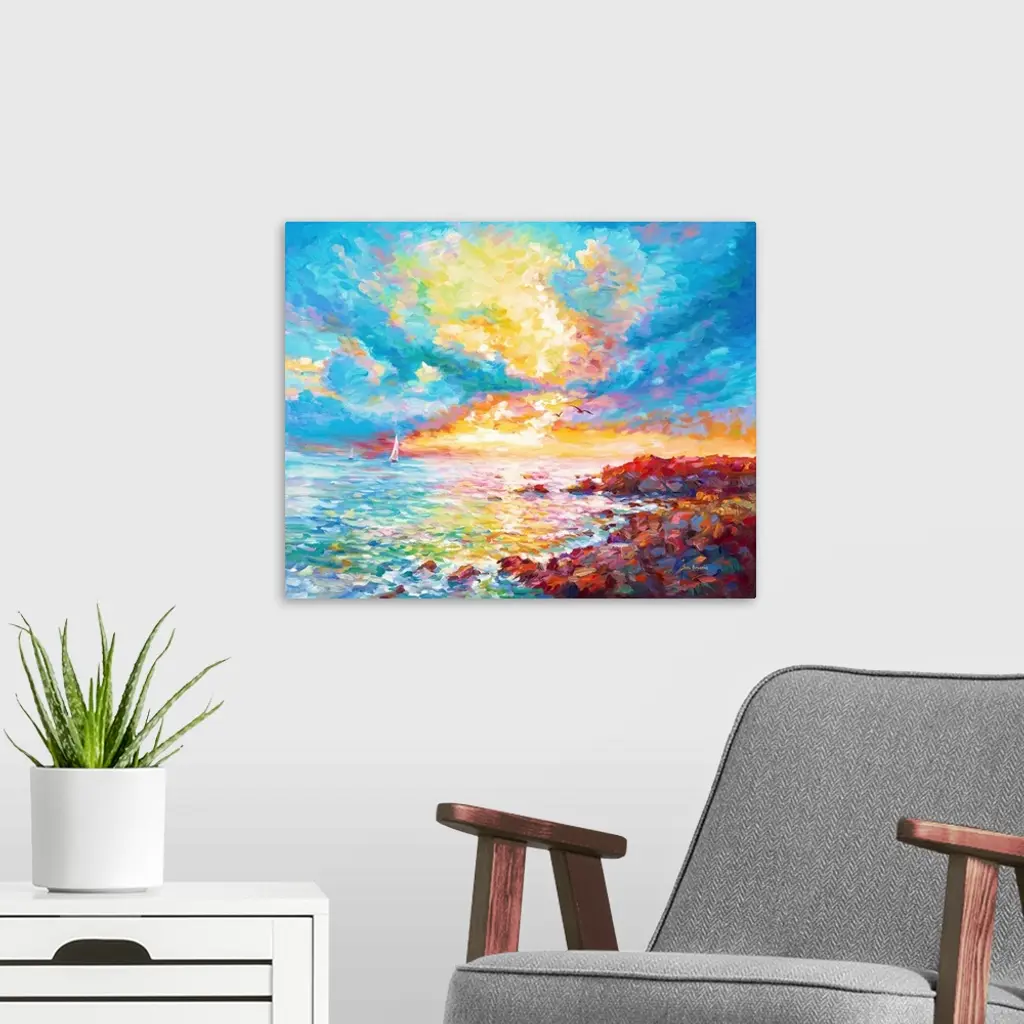 Sunset In Sardinia wall art for home and office decor. Discover canvas art prints, photos, mural, big canvas art and framed wall art in GreatBigCanvas.com's varied collections.