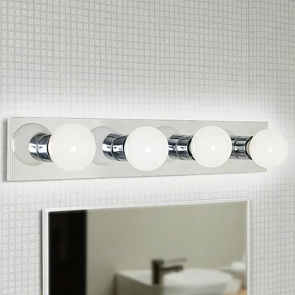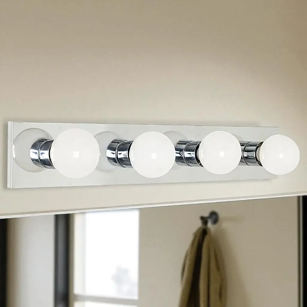 Sunset Lighting Four Light Vanity Wall Light – Polished Chrome Contemporary Hollywood-style vanity bar in a polished chrome finish with four medium-base sockets. Dimmable compatible, functional over-mirror illumination in baths and hallways. Key Features Medium E26 sockets for four 60W bulbs (bulbs not included) Polished chrome finish with sleek mirror-bar look Dimmable with compatible wall switch (not included) Rated for use in damp locations Easy wall-mount installation Specifications Brand: Sunset Lighting Item Number: F2253-15 Material: Metal Style: Contemporary Light Fixture Form: Vanity Finish: Polished Chrome Number of Light Sources: 4 Socket/Base: Medium (E26) Wattage per Bulb: 60W Shape: A19 Special Feature: Dimmable Room Type: Bathroom, Hallway Mounting Type: Wall Mount Item Weight: 2.1 lb Product Dimensions: 24 x 4.5 in (overall length x depth) Included Components: 1005781