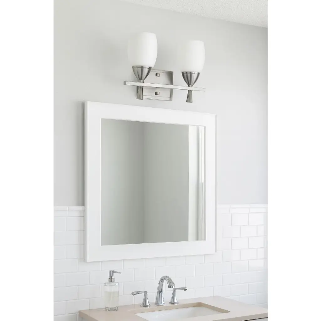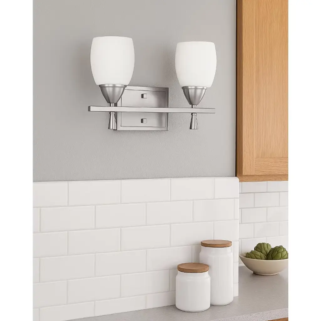 Sunset Lighting Sunset Lighting Bristol Two Light Vanity Wall Light - Dimmable - Bright Satin Nickel Elevate your space with the Bristol two-light vanity, featuring a bright satin nickel finish and integrated LED for crisp, efficient illumination. Its dimmable, damp-rated design fits bathrooms, hallways, and other living areas while complementing both classic and modern décor. Engineered for long life and reliable performance to keep your home beautifully lit. Key Features: • 16W / 3000K / 120V / 90CRI • 1200 Source Lumens / 1060 Delivered Lumens • 50,000 hours / Dimmable / Damp rated • Dimmable lighting for adjustable ambiance • Premium quality construction for durability • Stylish design complements many interiors • Suitable for dry or damp areas, indoor or outdoor applications per listing Specifications: • Brand: Sunset Lighting • Color: Satin Nickel • Material: Metal • Light Fixture Form: Vanity • Room Type: Bathroom, Living Room, Hallway • Indoor/Outdoor Usage: Outdoor, Indoor • Power Source: Corded Electric • Special Feature: Dimmable • Control Method: App • Light Source Type: Light Emitting Diode • Finish Type: Satin Nickel • Included Components: 1113979 • Item Weight: 10 pounds • Number of Items: 1 • Wattage: 8 watts • Manufacturer: LUMINANCE • Part Number: F2295-80-LED-JA8 • Country of Origin: China • Item Model Number: F2295-80-LED-JA8 • Finish: Satin Nickel • Item Package Quantity: 1 • Mounting Type: Ceiling, Wall • Special Features: Dimmable