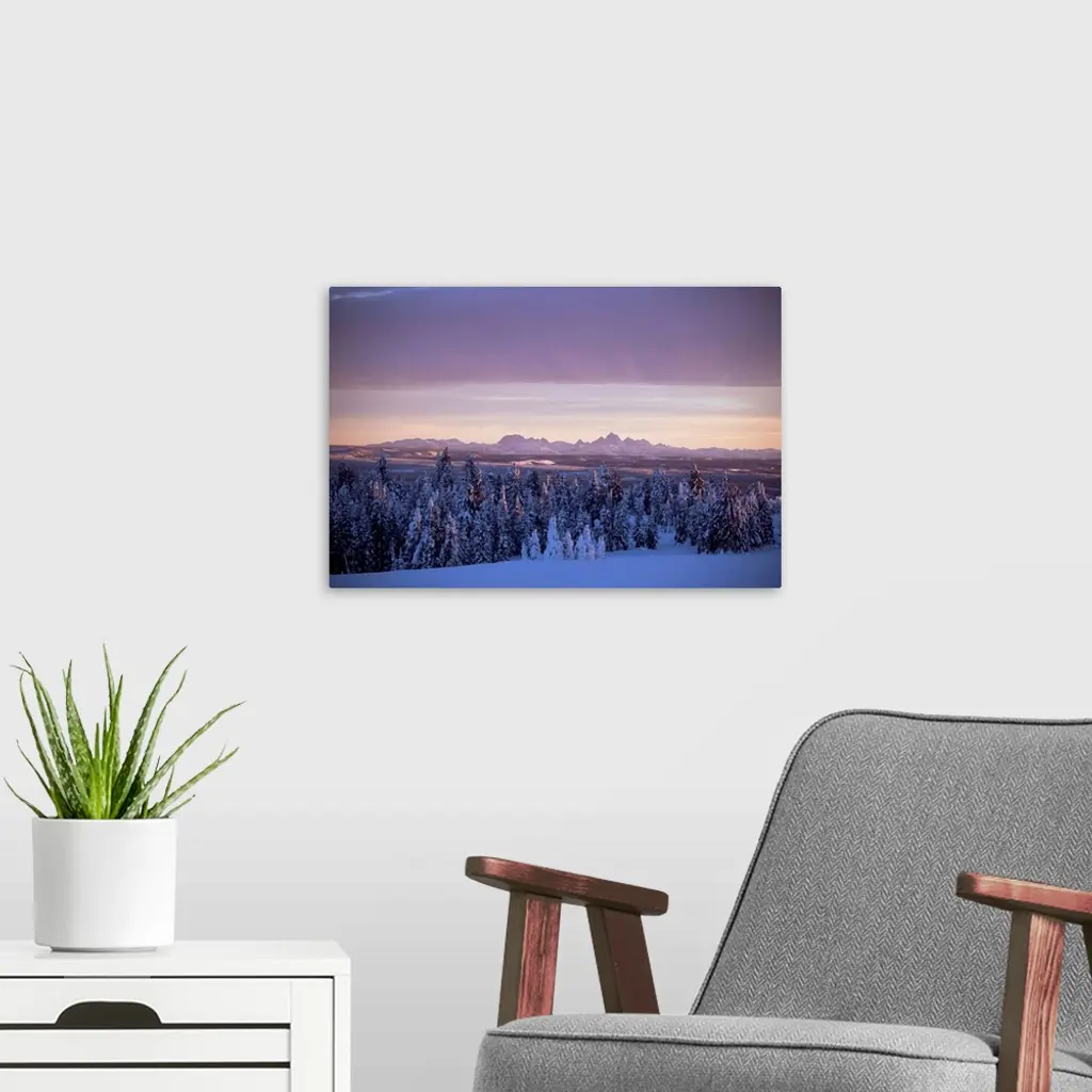 Sunset on Grand Tetons from Two Tops, West Yellowstone, Montana wall art for home and office decor. Discover canvas art prints, photos, mural, big canvas art and framed wall art in GreatBigCanvas.com's varied collections.