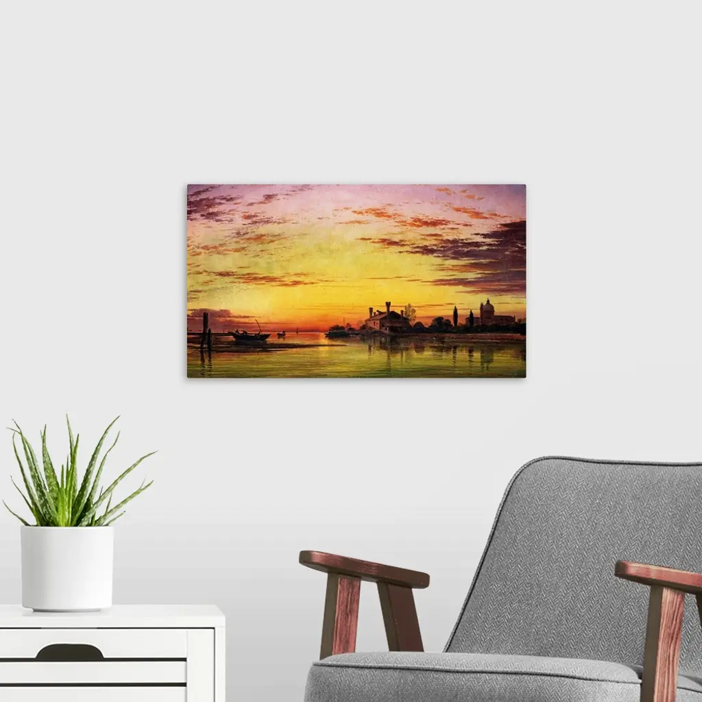 Sunset On The Laguna Of Venice, Italy wall art for home and office decor. Discover canvas art prints, photos, mural, big canvas art and framed wall art in GreatBigCanvas.com's varied collections.