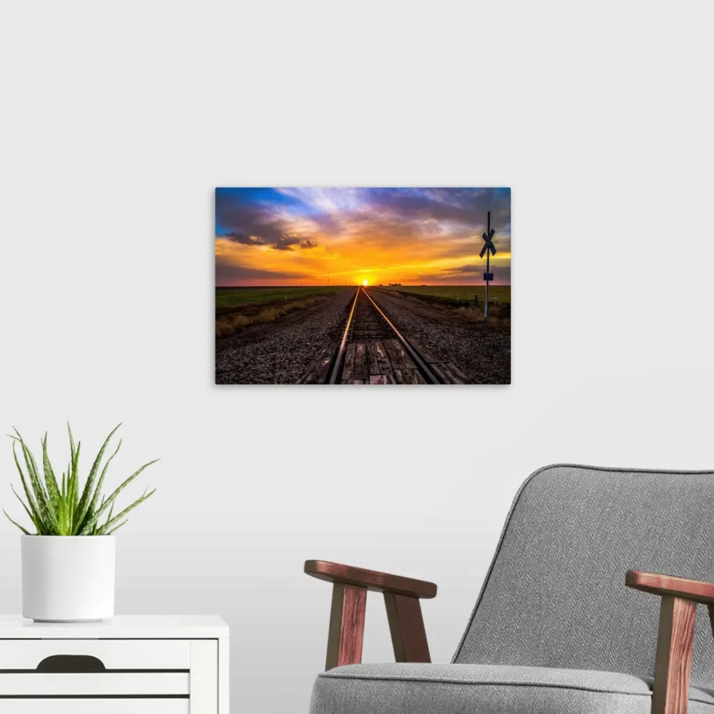 Sunset on Tracks wall art for home and office decor. Discover canvas art prints, photos, mural, big canvas art and framed wall art in GreatBigCanvas.com's varied collections.