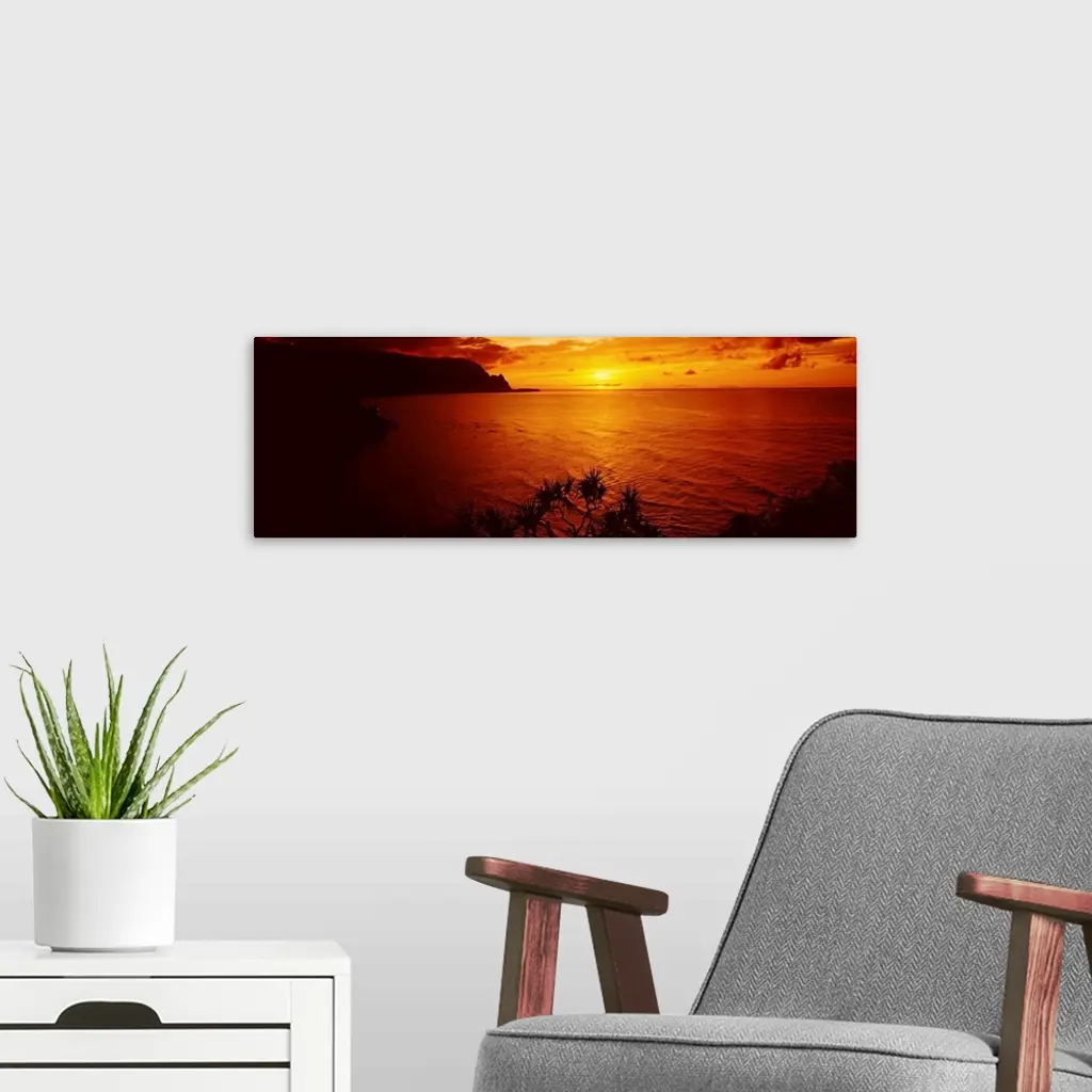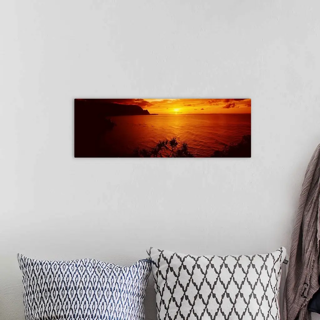 Sunset over an ocean, Hanalei Bay, Kauai, Hawaii wall art for home and office decor. Discover canvas art prints, photos, mural, big canvas art and framed wall art in GreatBigCanvas.com's varied collections.