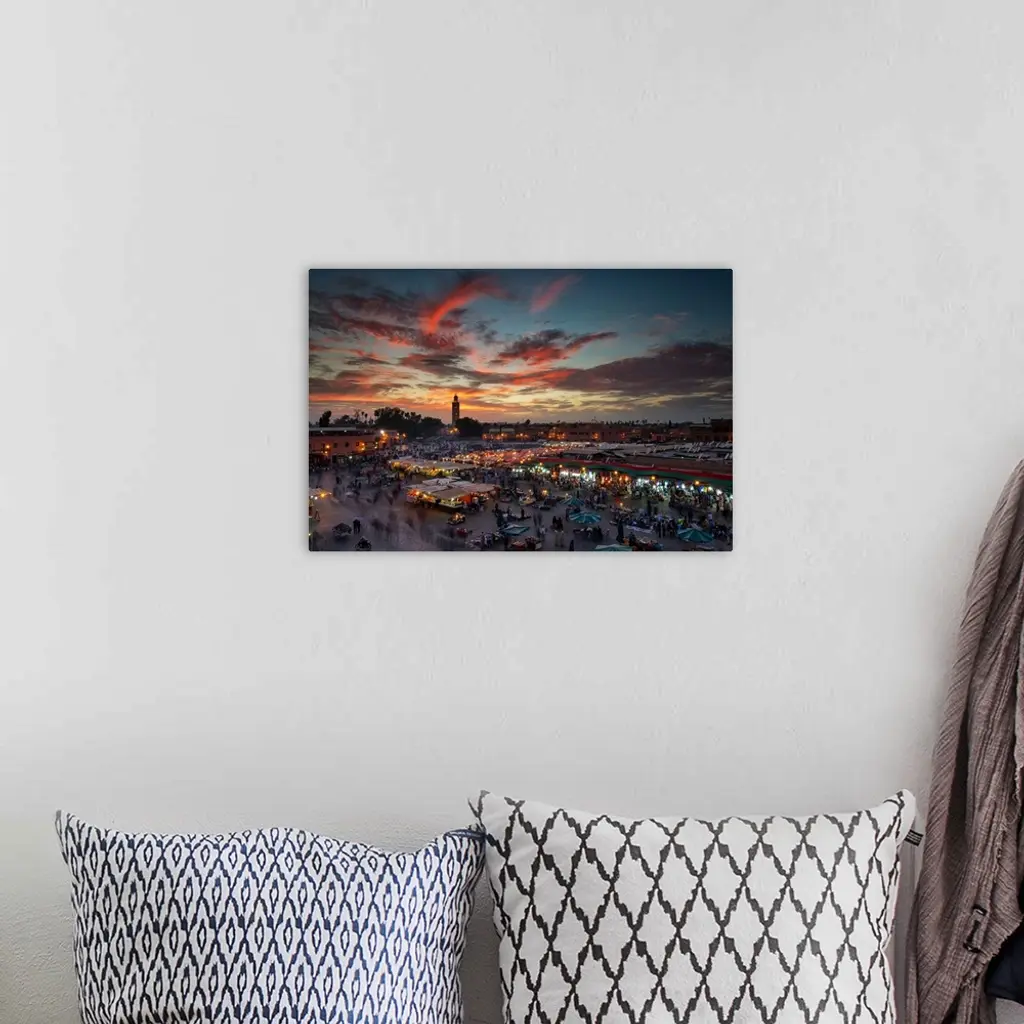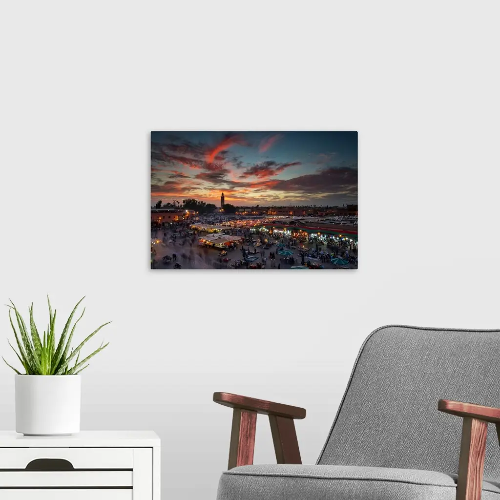 Sunset Over Jemaa Le Fnaa Square In Marrakech, Morocco wall art for home and office decor. Discover canvas art prints, photos, mural, big canvas art and framed wall art in GreatBigCanvas.com's varied collections.
