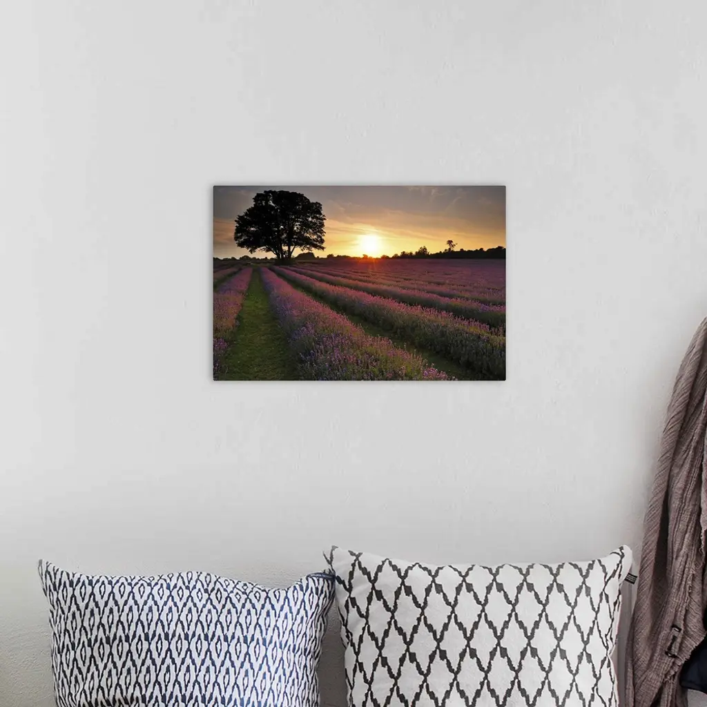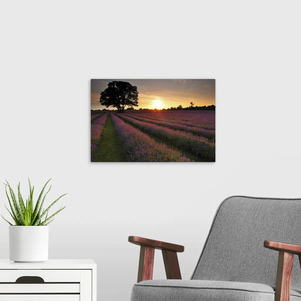 Sunset over lavender field. wall art for home and office decor. Discover canvas art prints, photos, mural, big canvas art and framed wall art in GreatBigCanvas.com's varied collections.