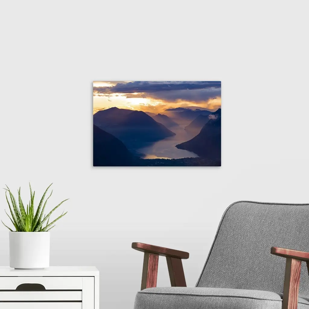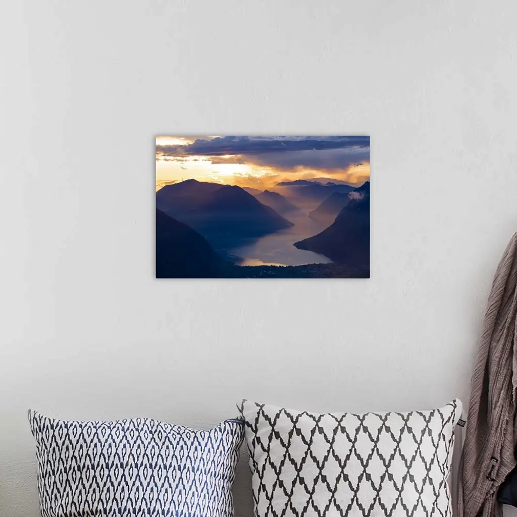 Sunset Over The Mountains And The Lake Lugano, Switzerland