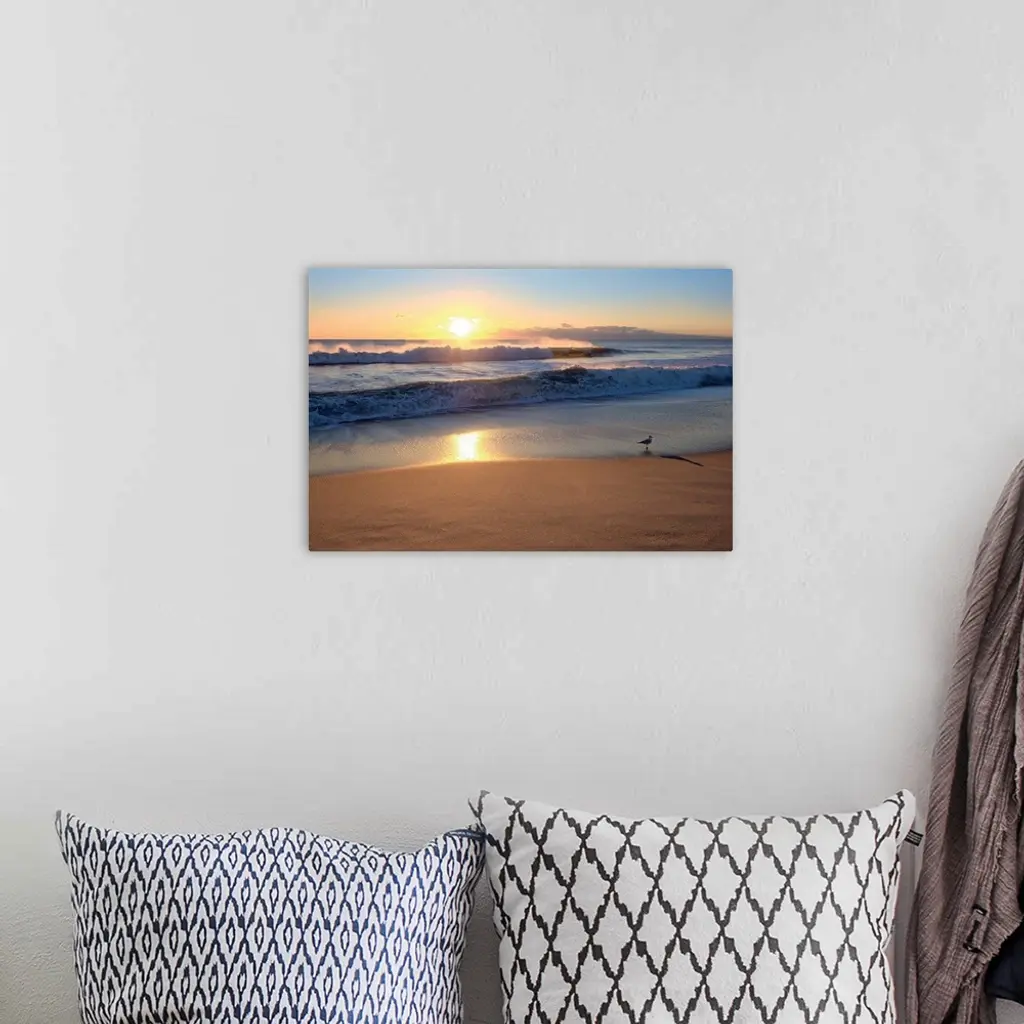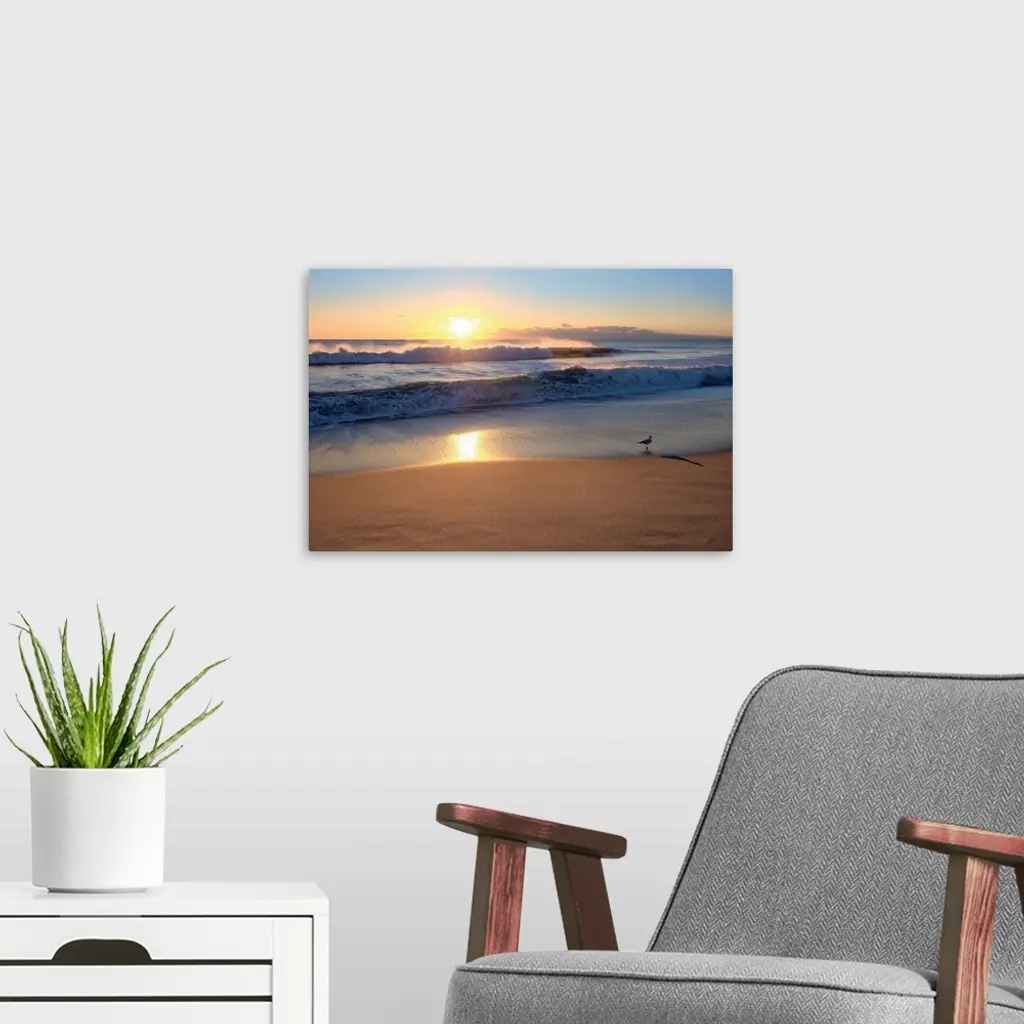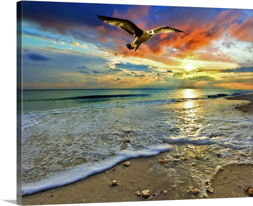 Sunset Seagull wall art for home and office decor. Discover canvas art prints, photos, mural, big canvas art and framed wall art in GreatBigCanvas.com's varied collections.