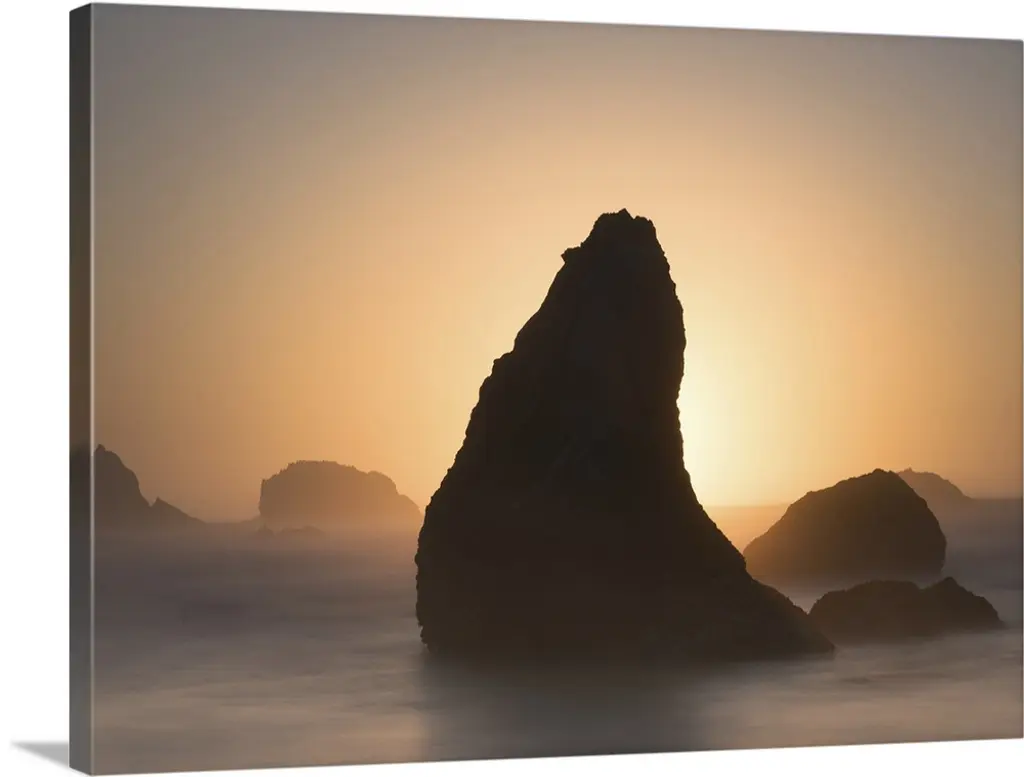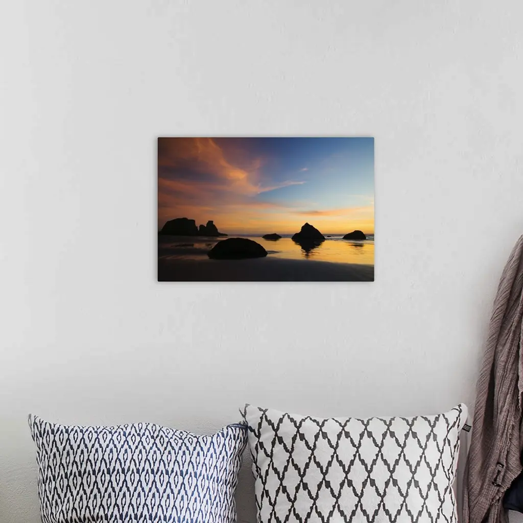 Sunset Sky, Silhouetted Sea Stacks On Bandon Beach, Bandon Beach State Park, Oregon