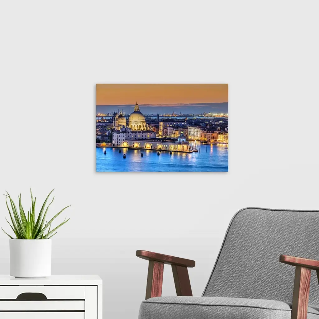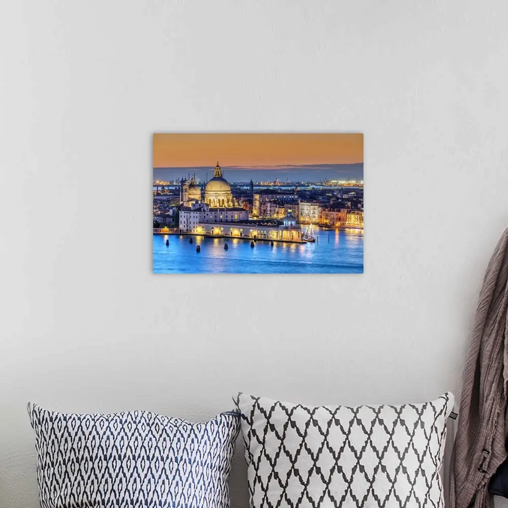 Sunset view over Basilica of Santa Maria della Salute and Grand Canal, Venice, Veneto, Italy. Veneto, Venice, Italy.