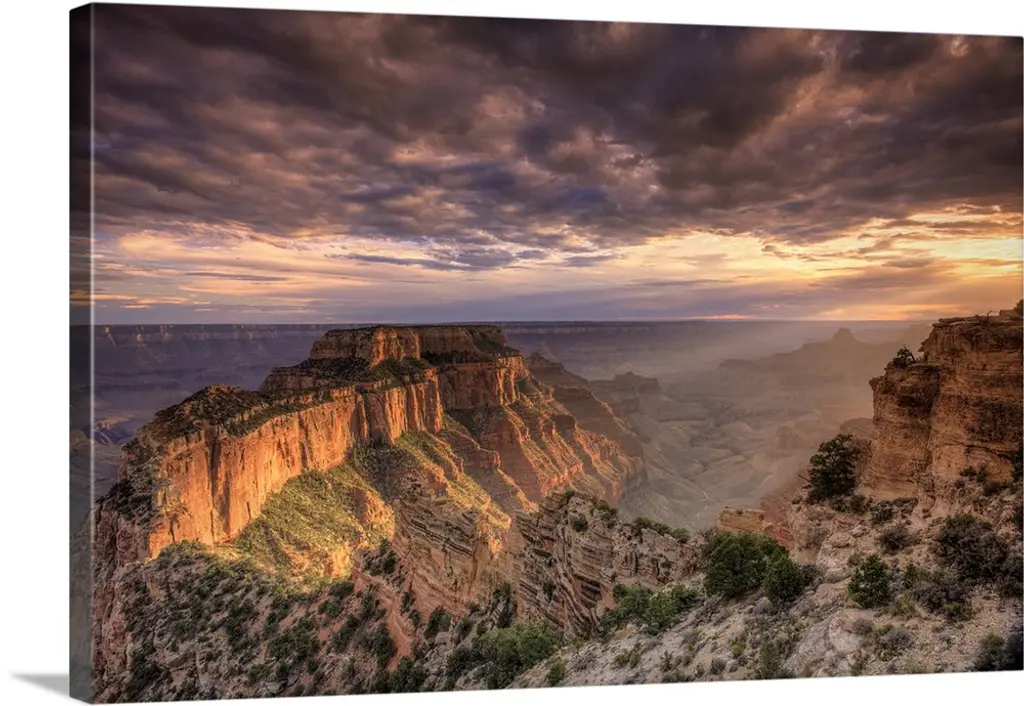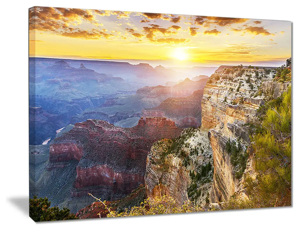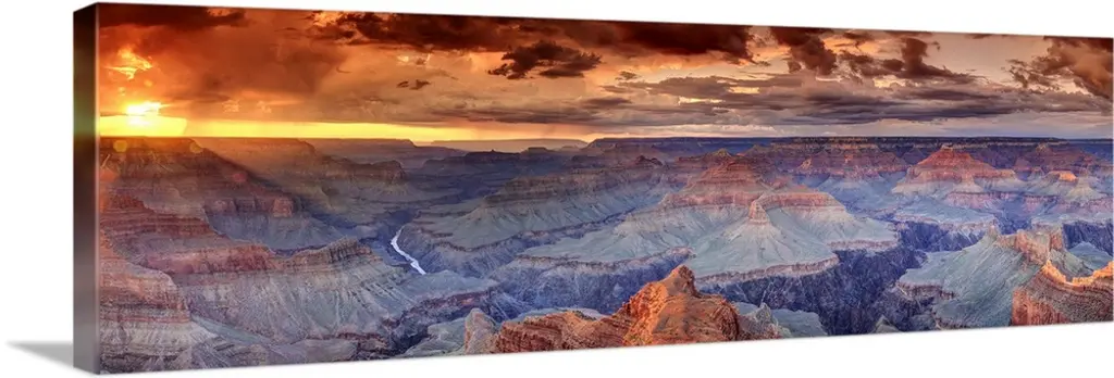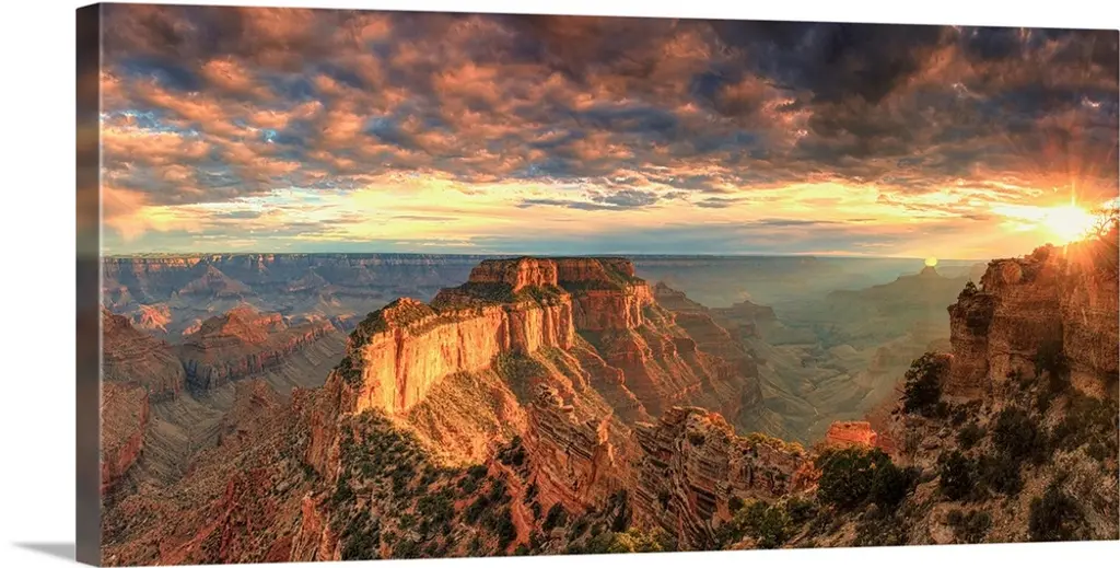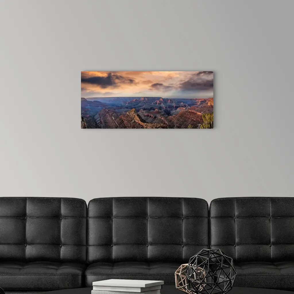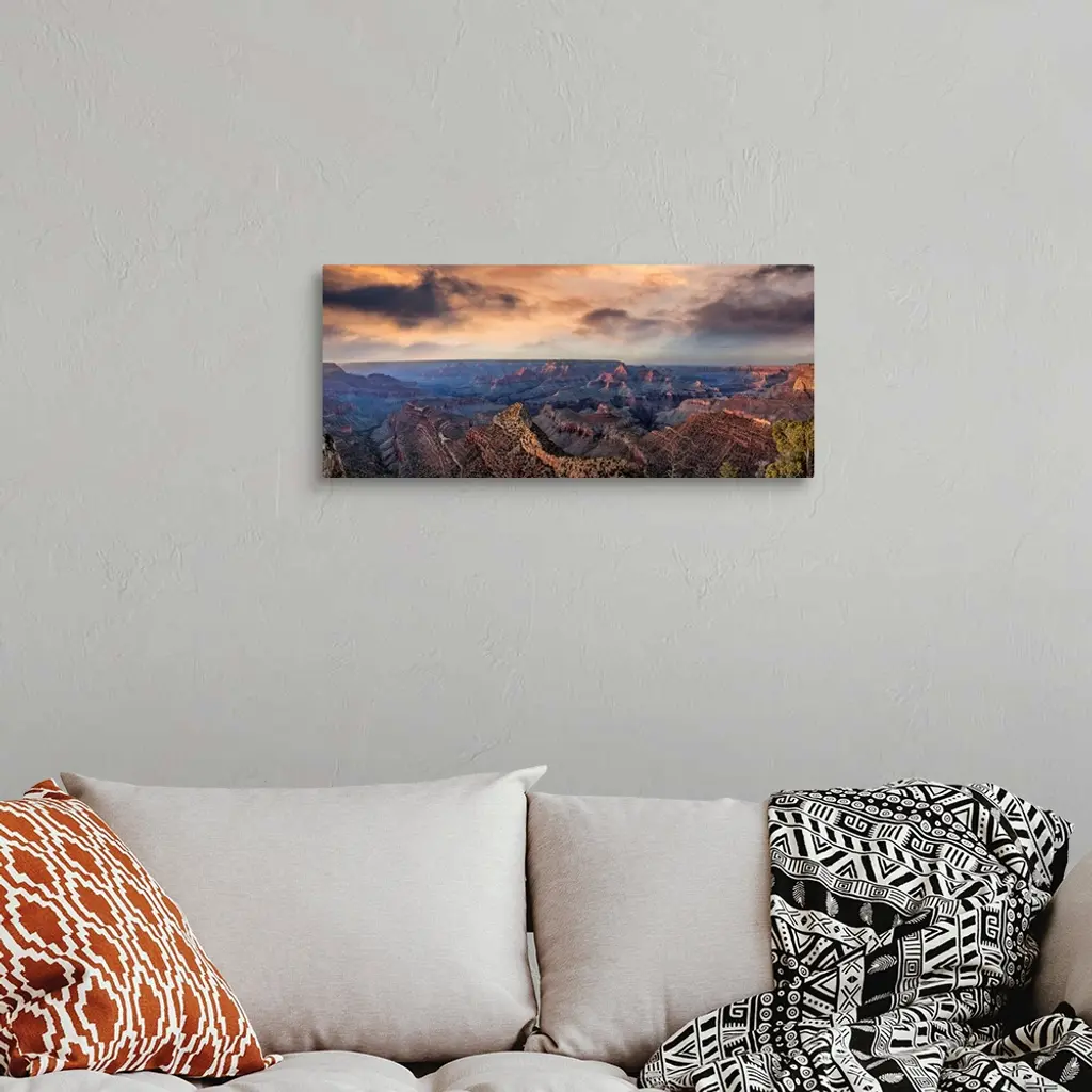 Sunset With Clouds Panorama In The Grand Canyon