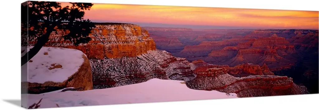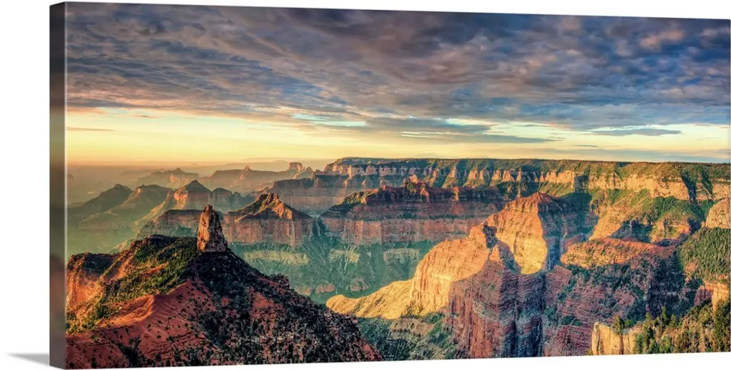 Sunset with clouds panorama in the Grand Canyon.