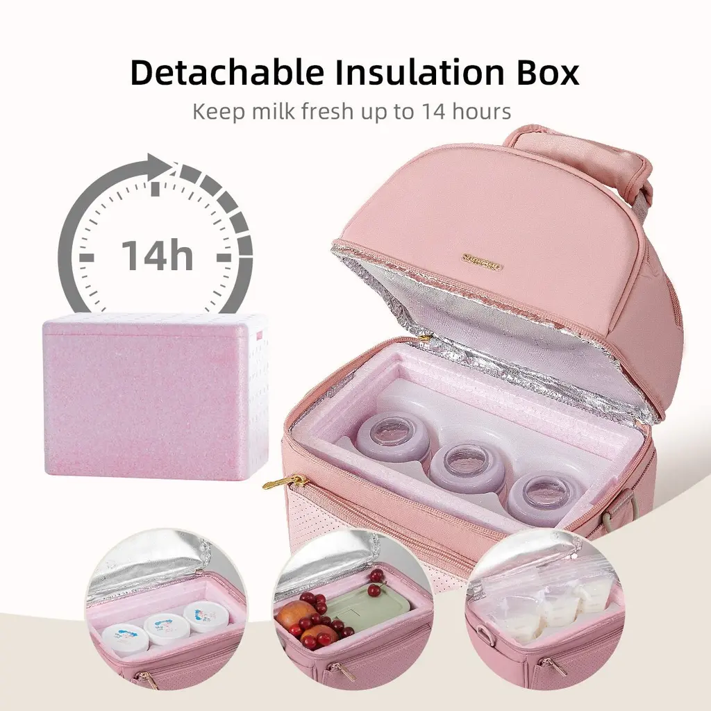 Experience the ease and convenience of our Breastmilk Cooler Bag, designed for nursing mothers who need a reliable solution for storing and transporting breast milk on the go. Featuring a spacious double-decker design, this cooler bag offers ample room for breast milk, pumps, and other essentials. The lower compartment includes a detachable EPP insulation box, ensuring your milk stays fresh for up to 14 hours. This set also comes complete with two ice packs and three 120ml milk storage bottles, providing everything you need for safe and efficient milk storage. Stay prepared and worry-free with our all-in-one breastmilk cooling solution.Including: 1* Breastmilk CoolerBag; 1* Detachable Insulation Box; 2* Ice Packs; 3* Baby Bottles