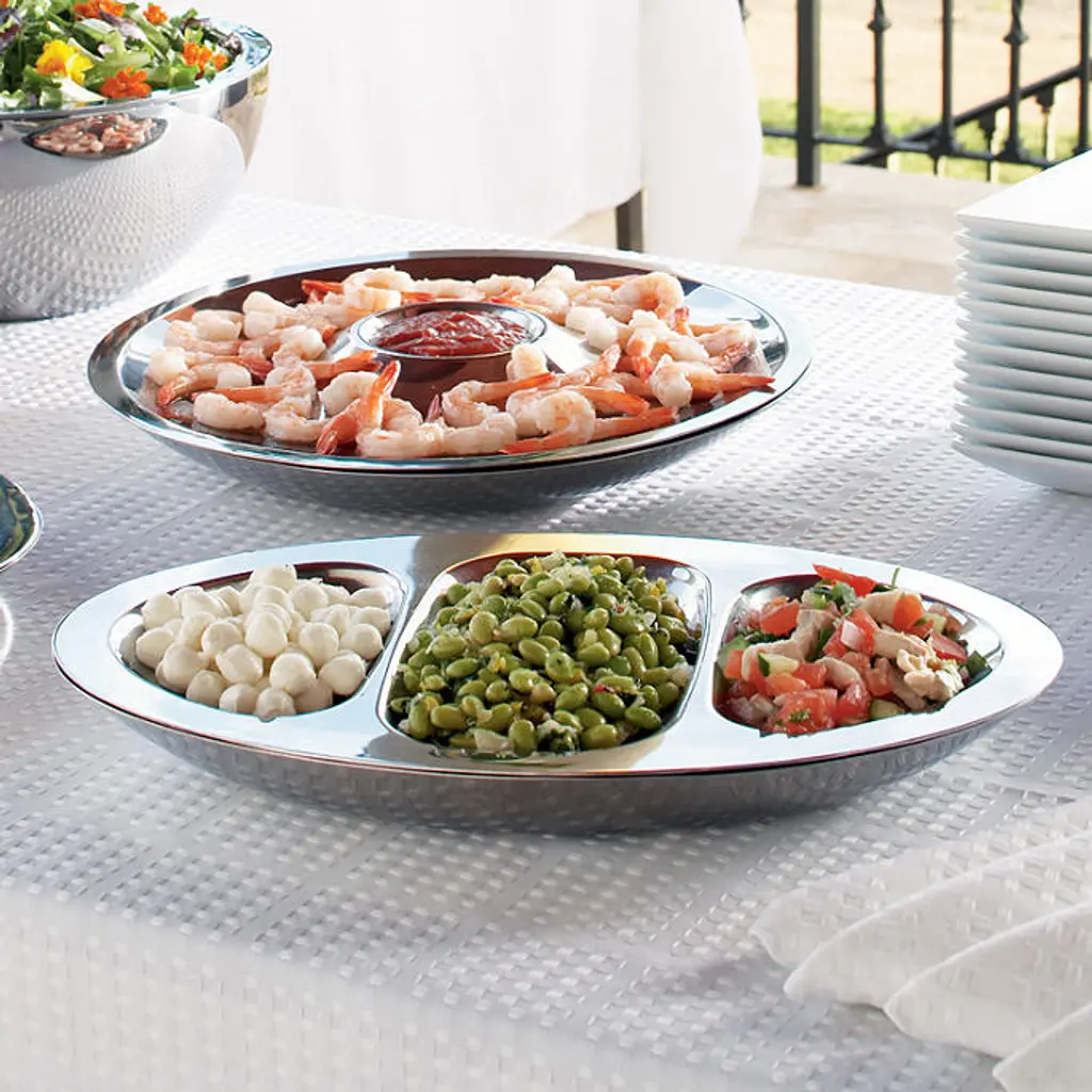 Our Super Chill Sectioned Insulated Servers are prized for their polished presence and superb temperature regulating abilities at your buffet table. Designed to keep foods perfectly chilled for several hours without ice or condensation, the gleaming, seamless serveware is ideal for summer socials staged outdoors or indoors.A Frontgate exclusiveDouble-walled 18/8 stainless steel provides maximum cold retentionGel-based inner layer freezes like ice and holds its temperature Won't leave messy water rings on tabletops or fine furnishingsPlace in a freezer prior to useOutdoor or indoor useHand wash (view instructions) At Frontgate, our primary focus is quality. We guarantee that every product we sell will stand up to the supreme test – our customers' satisfaction. To learn more about our policies, visit our Shipping & Processing, Returns & Exchanges and Warranty & Price Guarantee pages.