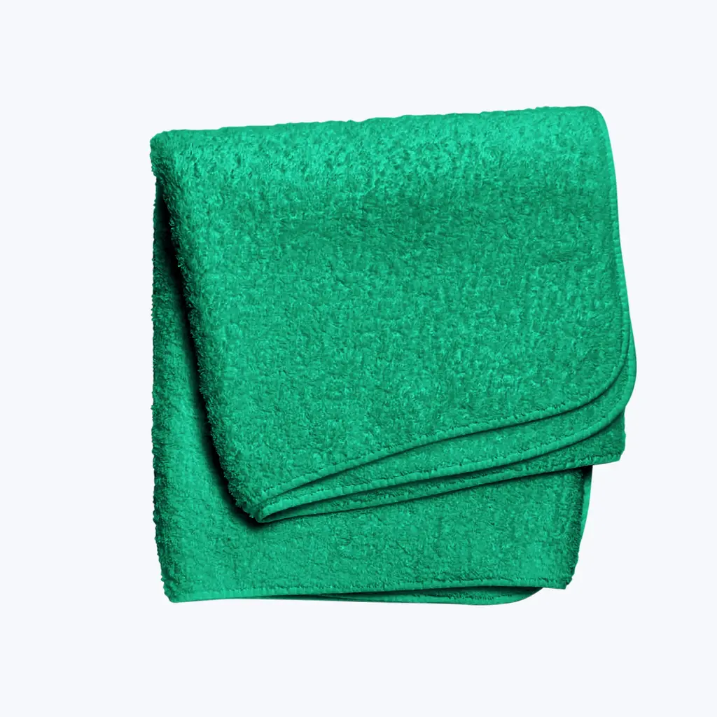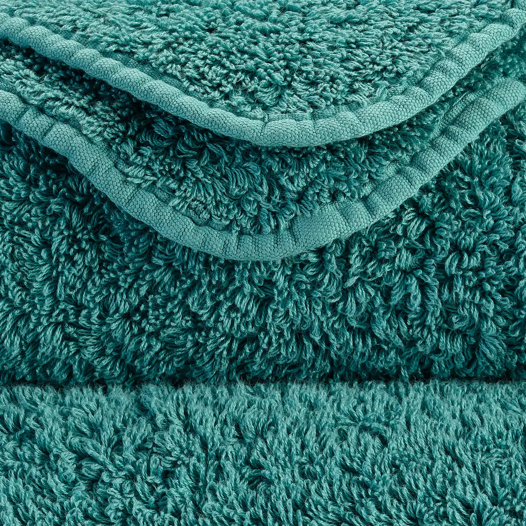 Super Pile Bath Towels are made from the finest 100% Giza Extra Long Staple Egyptian Cotton that's only grown in one small area of the Nile Delta. At 700 gsm, these bath towels are super absorbent, have a luxurious spa-like softness, and dry quicker courtesy of their longer loop with more surface area. The Super Pile Towel is finished with signature trim and rounded corners with discreet dyed labels to match this colorful emerald green towel. Elevate your bathing ritual to an art using Abyss and Habidecor. Made in northern Portugal for over 40 years, these high-quality luxury bath linens are made from the softest Egyptian cotton from Giza.