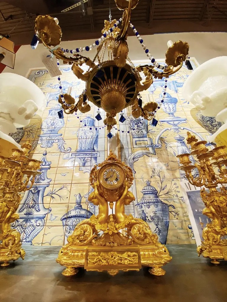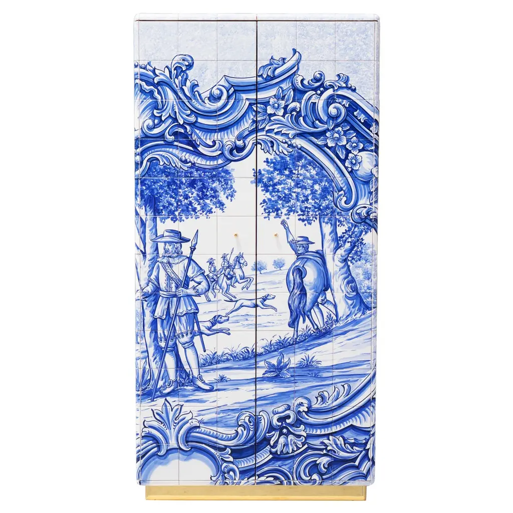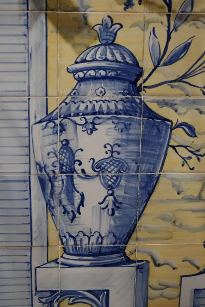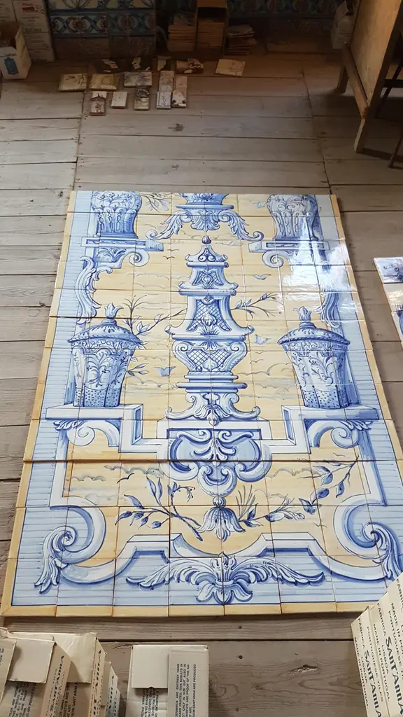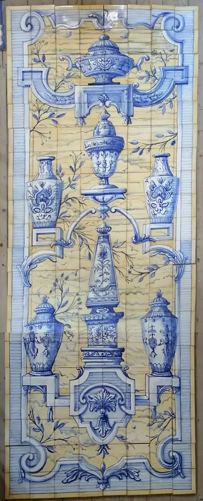 A group of two superb tile panels by famous interior designer Valerian Rybar. Yellow, blue & white. Dimensions: Height 111" Width 45" Depth 4".