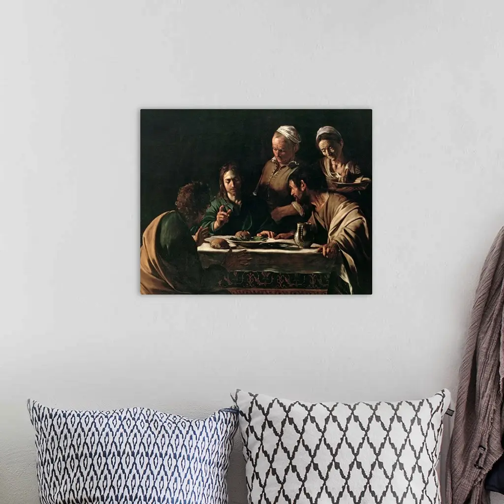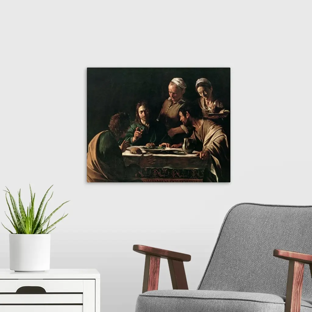 XJL60976 Supper at Emmaus, 1606 (oil on canvas) (see also 169588) by Caravaggio, Michelangelo Merisi da (1571-1610); 141x175 cm; Pinacoteca di Brera, Milan, Italy; Italian, out of copyright