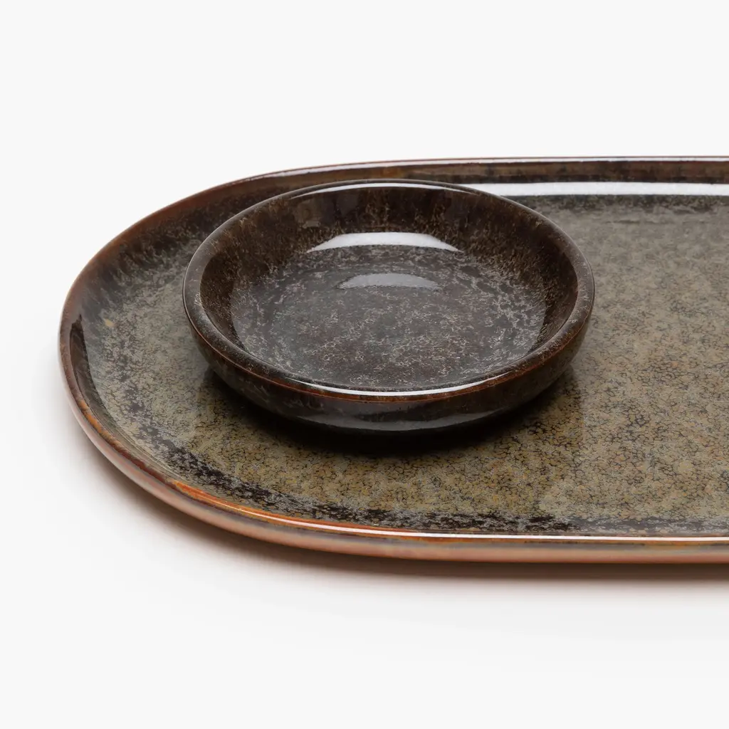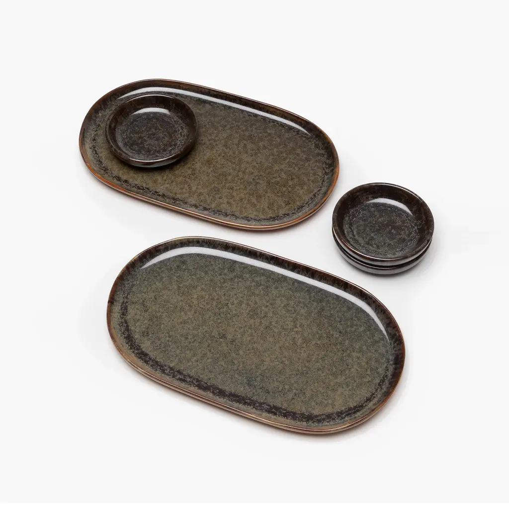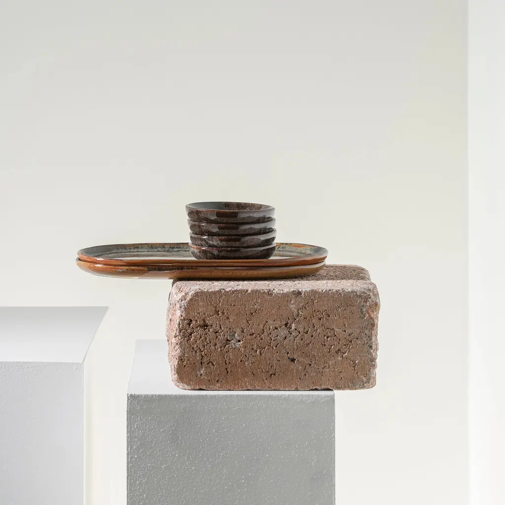 Take your food serving style to the next level with the Serax Surface Apero Set. Part of the Serax Surface collection, this set features a striking texture and natural hues that reference the beauty of Zeeland’s landscapes. To create this set, designer Sergio Herman took inspiration from nature’s colors and organic patterns, resulting in beautiful dinnerware pieces that are perfect for appetizers. Apero comes with four bowls and 2 trays. Made from stoneware, each piece features a gorgeous glazed finish. Use the set on its own or pair it with the other Surface dinnerware designs to create a stunning dining table setting.
