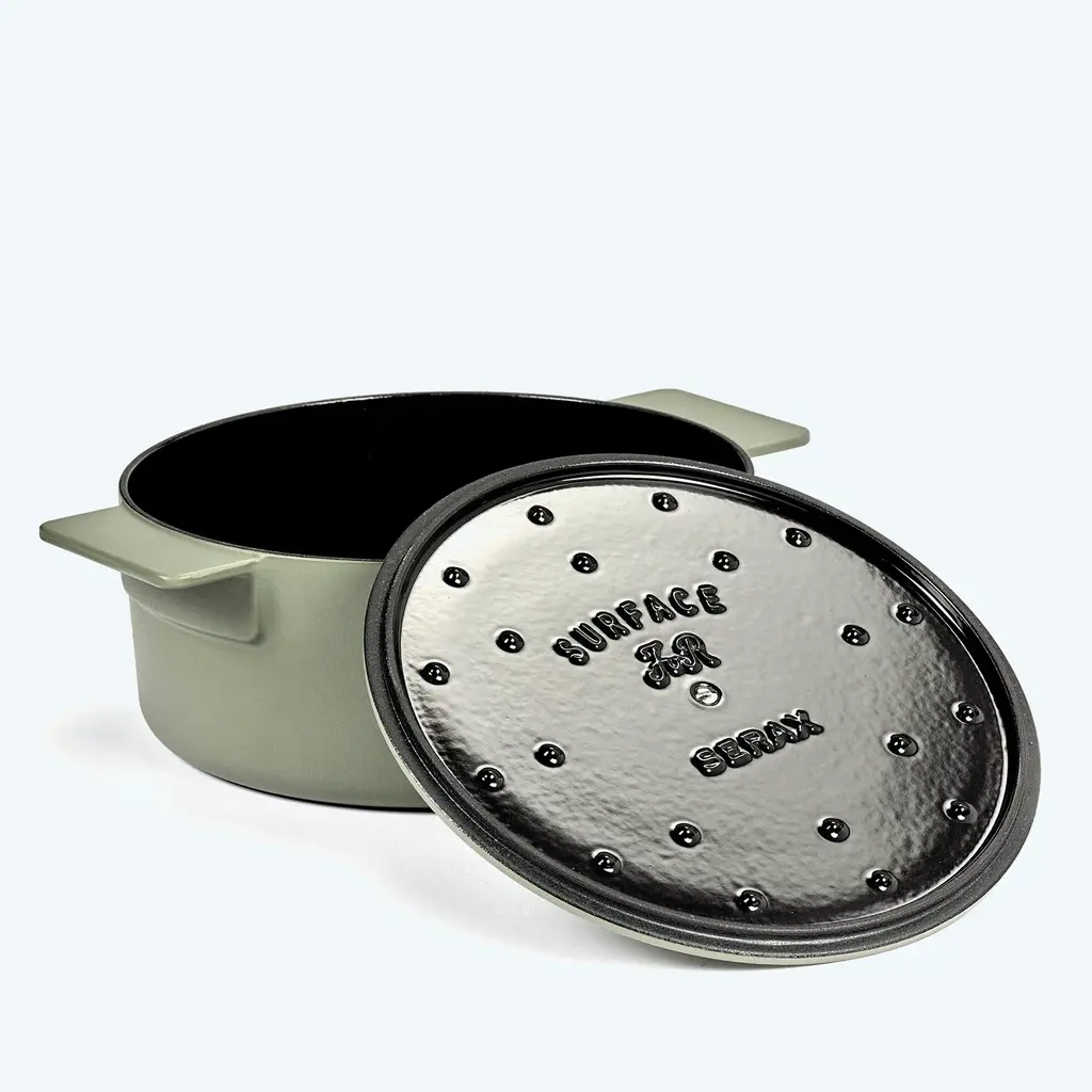 The Surface for Serax collection of cast-iron pots & pans marries robust materials with intentional modern design. A strong glaze ensures the highest heat in this cast-iron pot so bold and rich flavors can be fully absorbed. Designed by master chef Sergio Herman, the Surface for Serax collection features an array of sizes, all with their own clever function and intention.