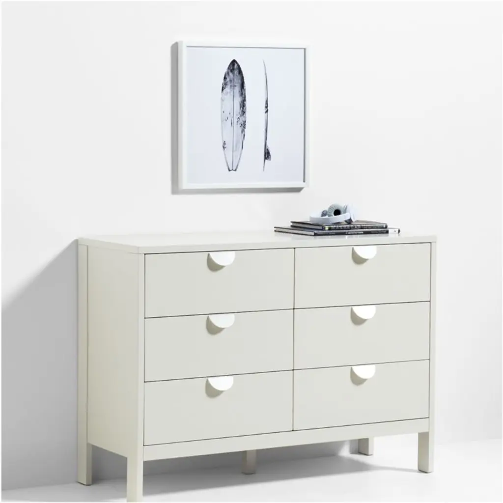 Simple yet striking, this surfboard wall art draws on surfer and artist Gal Design's lifelong love of the sea. This Crate & Kids exclusive fine art print uses high-quality giclee technology to reproduce the original collage and photography work faithfully and meticulously on acid-free 100% cotton rag paper. Presented under lightweight acrylic in a white frame, this square art print is a bold, beachy decor accent for grommets and grown paddlers alike.