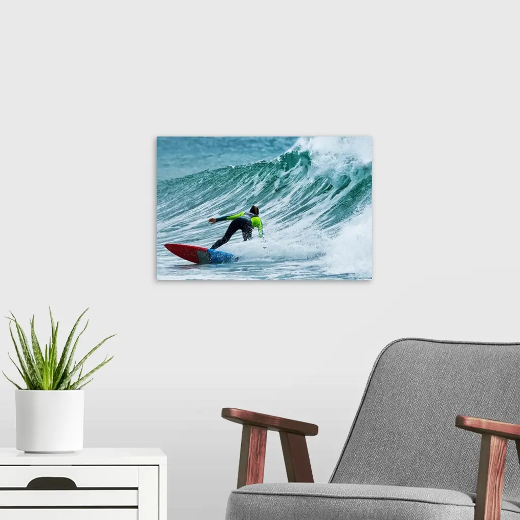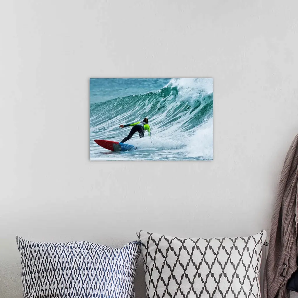 Surfer Catching A Wave, Tarifa, Cadiz, Andalusia, Spain