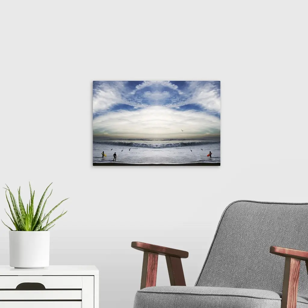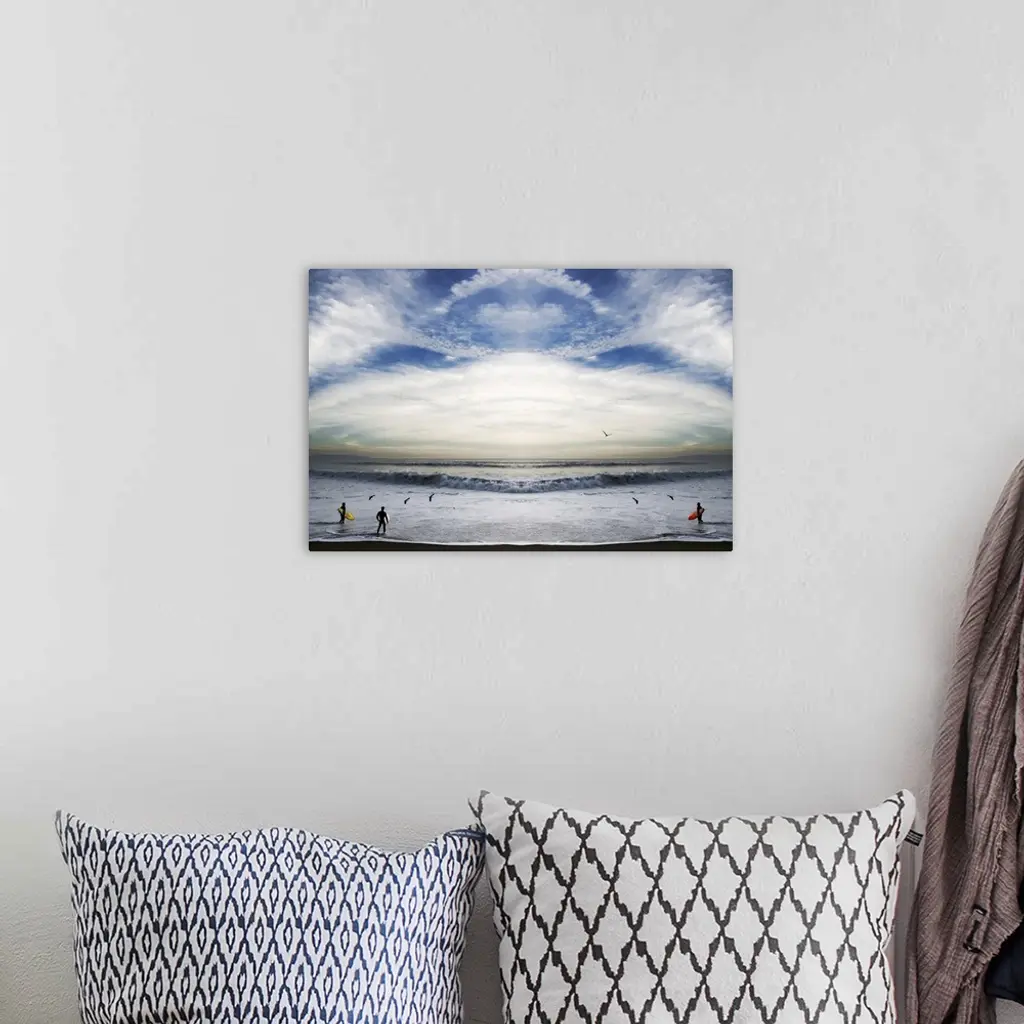 Surfers in the ocean, Malibu, California wall art for home and office decor. Discover canvas art prints, photos, mural, big canvas art and framed wall art in GreatBigCanvas.com's varied collections.