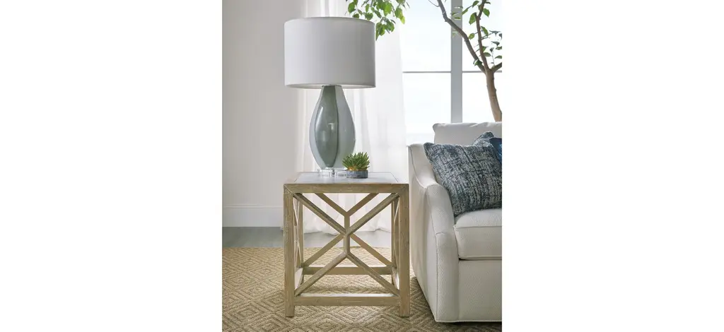 In a relaxed yet sophisticated style that exudes the lifestyle of a casual beach town community, the square-shaped Surfrider Accent Table is crafted of hardwoods with a sandblasted stone veneer top. The light natural Driftwood finish offers a serene organic look evoking laid-back sandy shores.