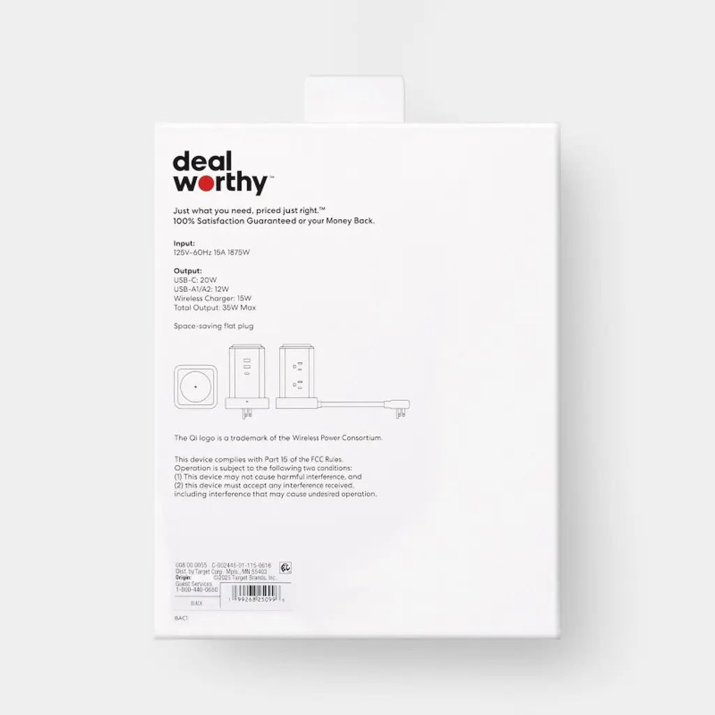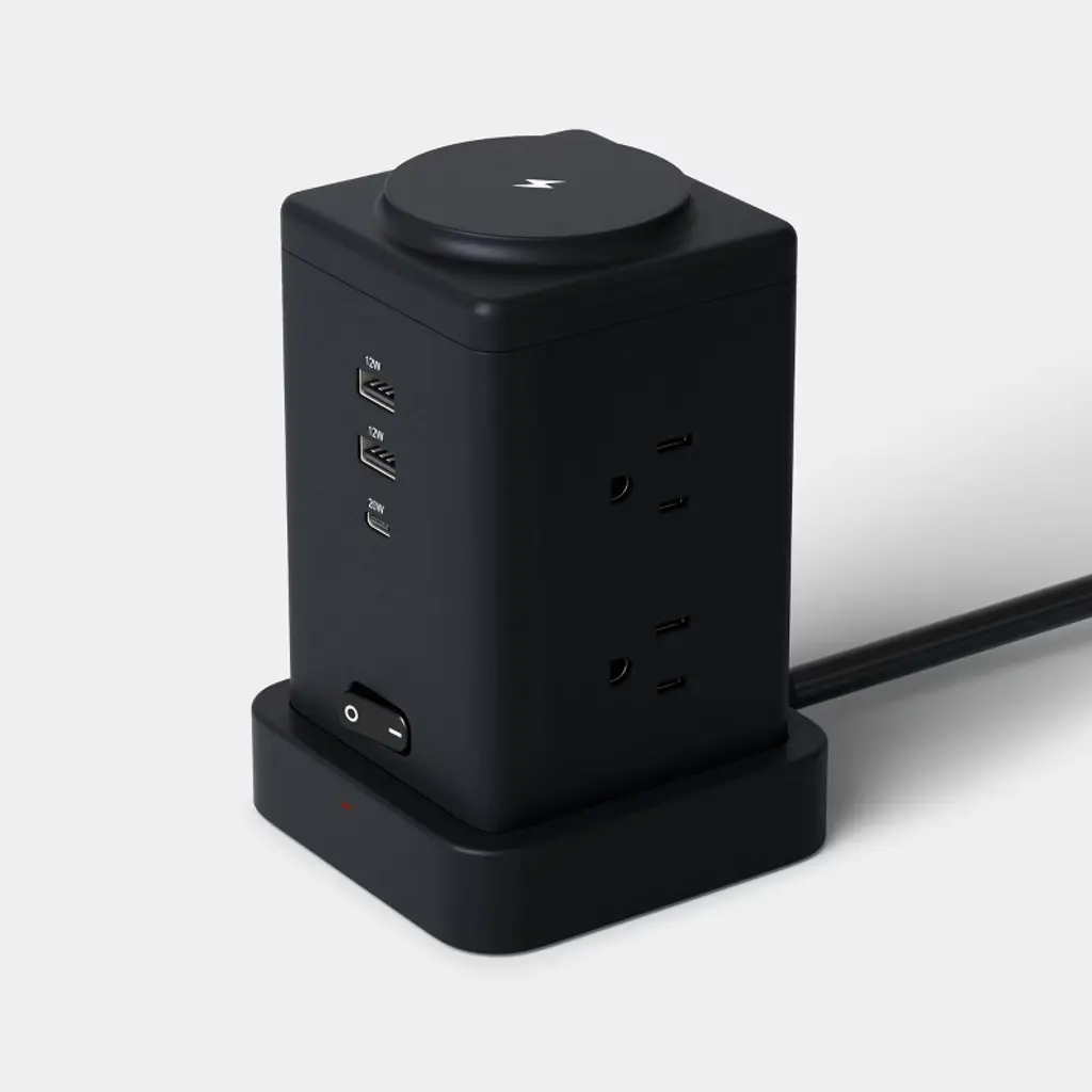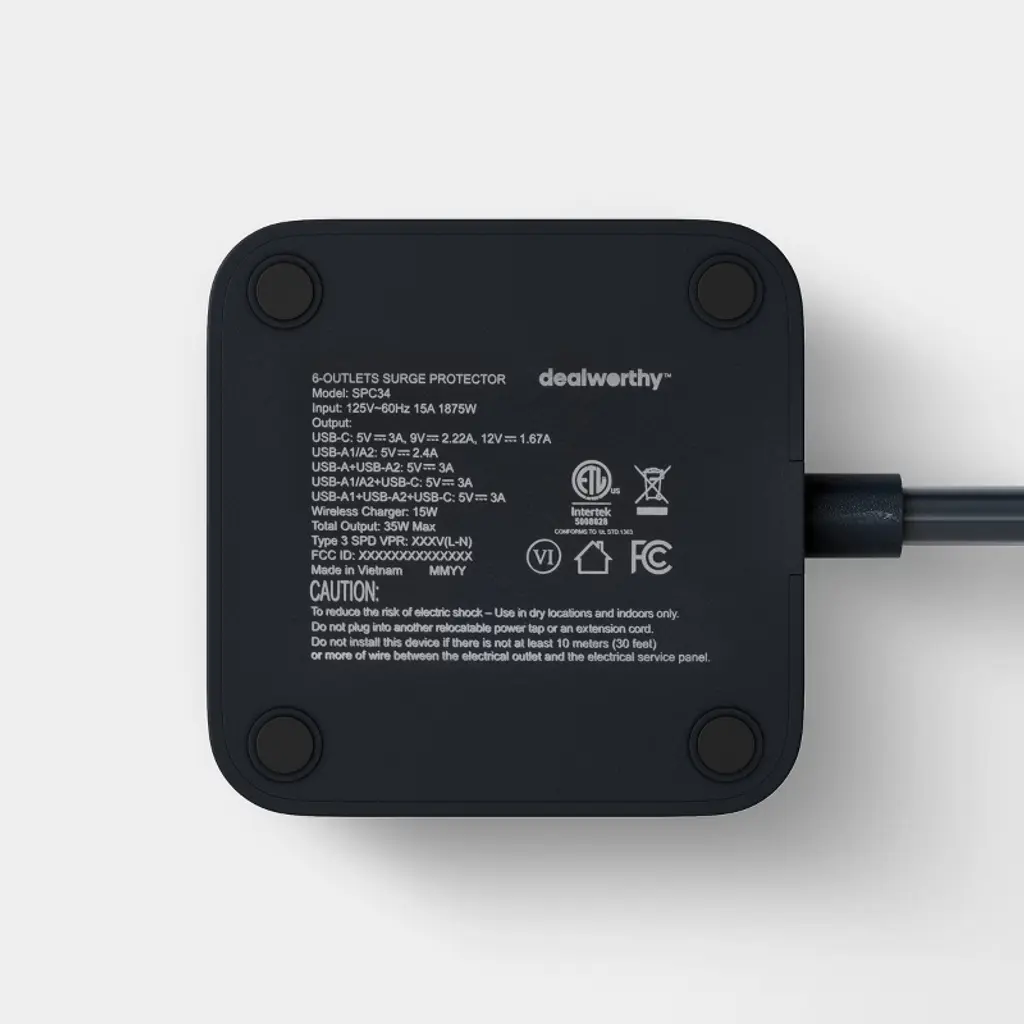 The Surge Protector Tower with Top Charging 6 Outlet Pad USB-C and USB-A Port 15A 6ft Cord from dealworthy™ offers a practical solution for managing multiple devices with its 6 outlets and top charging pad. Equipped with both USB-C and USB-A ports, it supports diverse charging needs. The 6-foot cord provides flexibility in placement, while the 1080-joule rating ensures reliable protection against power surges. The compact design, with dimensions of 5.35 inches in length and 2.99 inches in width and thickness, makes it suitable for various spaces.dealworthy™: Just what you need, priced just right.100% Satisfaction Guaranteed or your Money Back.