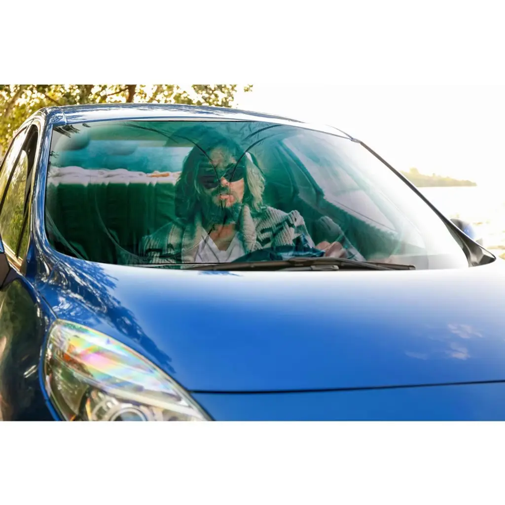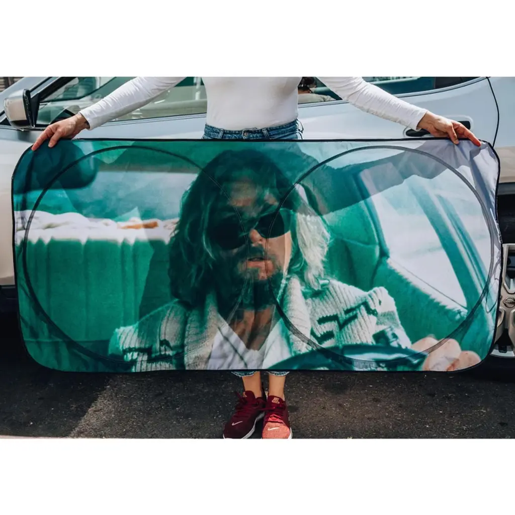 Ever opened your door to a blast of hot air in your face? Here’s the solution! This Big Lebowski sunshade protects, cools, blocks out UV rays and keeps your interior from cracking and fading. Sunshade makes it look like The Dude is driving your car! A Toynk exclusive, our visor measures 64 x 32 inches, fitting most cars, trucks, and vans. Foldable and easy to store!