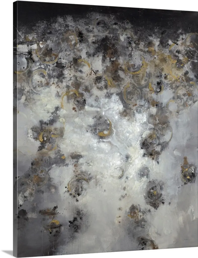 Contemporary abstract image of paint splatters and drops on a canvas.