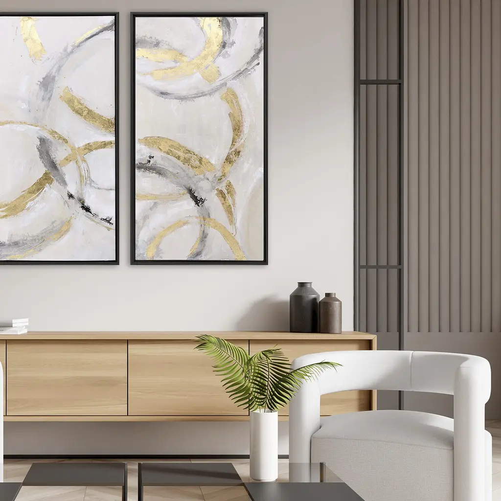 Suspended Motion Gray And Beige And Black And Metallic Canvas, The Studio
