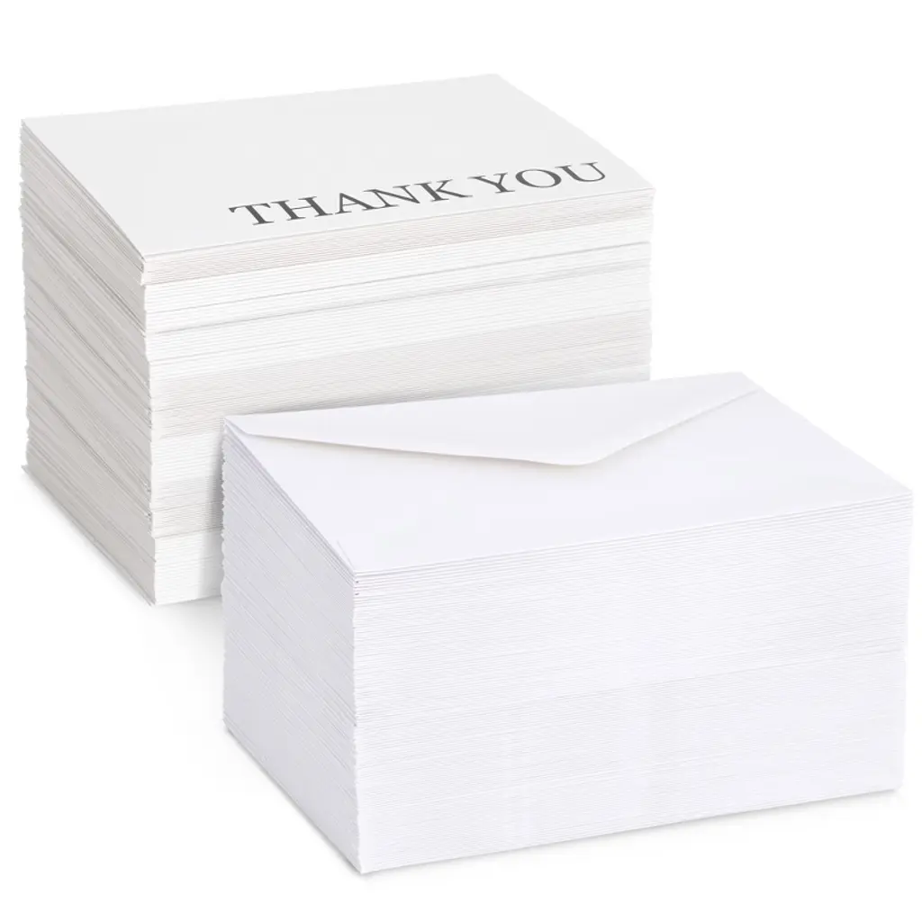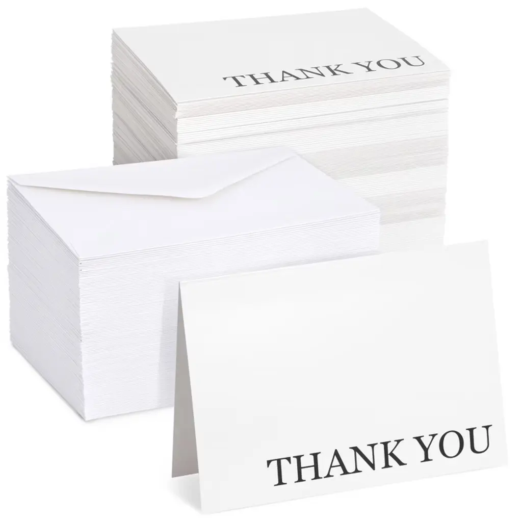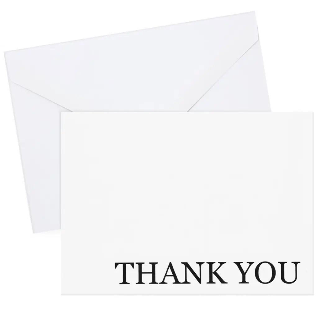 Expressing gratitude and appreciation is a timeless gesture that never goes out of style. Whether you're sending a note to a customer, colleague, friend, or family member, these boxed thank you cards offer an elegant and understated way to convey your thanks and make a lasting impression. Crafted with 250 gsm card stock, these black and white thank you cards are sturdy enough to withstand frequent handling while maintaining their pristine condition, ensuring that your message of appreciation is delivered with a professional touch. With a generous pack size of 120, these thank you notes offer exceptional value, providing you with a plentiful supply of cards for all your gratitude needs, whether for personal or professional use. These cards feature a horizontal layout with "Thank You" written on the front in black font, offering a universal appeal and gender-neutral style suitable for women and men at any occasion from funerals to bridal showers. The ample space inside these wedding thank you cards provide plenty of room to express your gratitude in detail, giving you the opportunity to personalize your message and make a meaningful connection with the recipient.