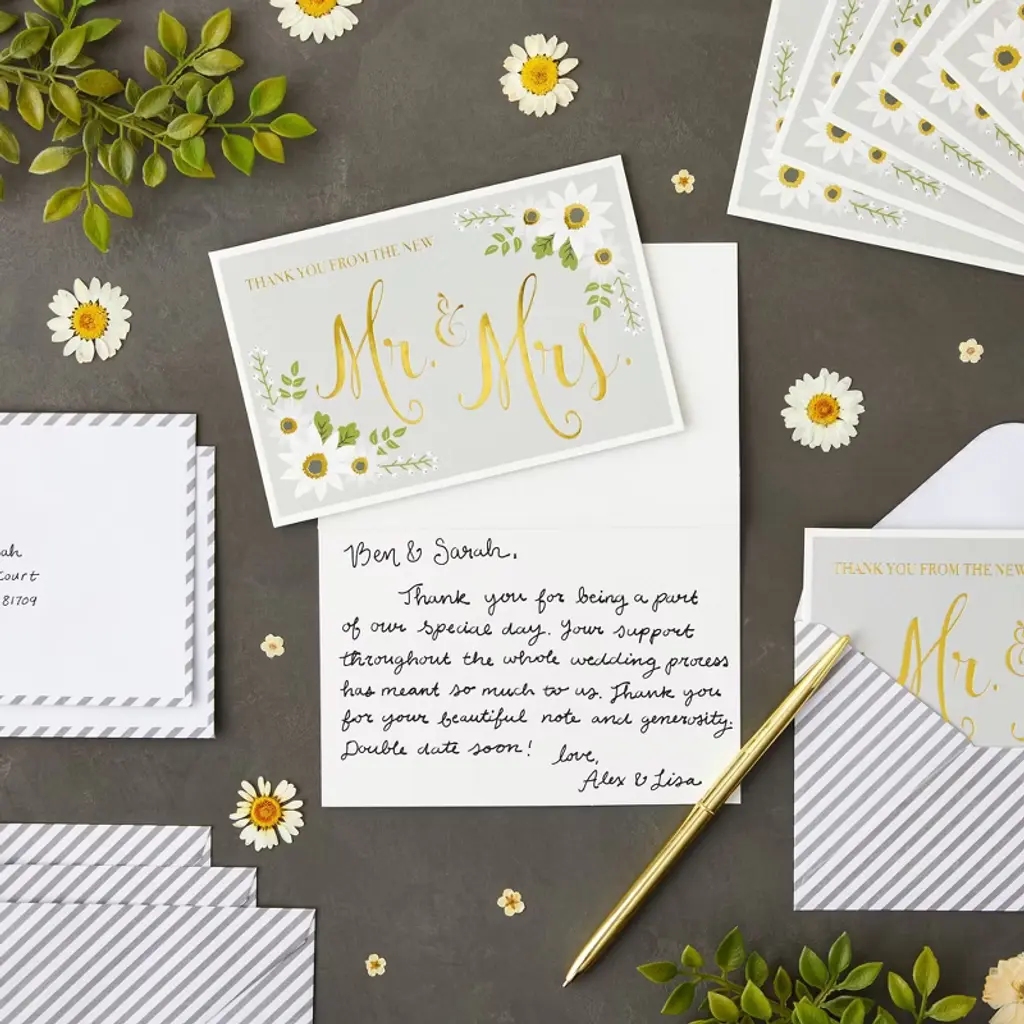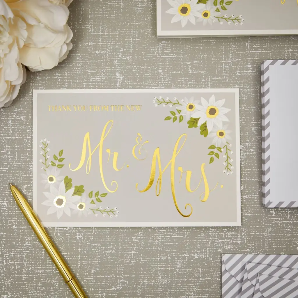 Sustainable Greetings 48-pack Gold Foil Thank You From The New Mr And Mrs Cards With Envelopes, Bulk Decorative Striped Cards For Wedding, 4 X 6 In