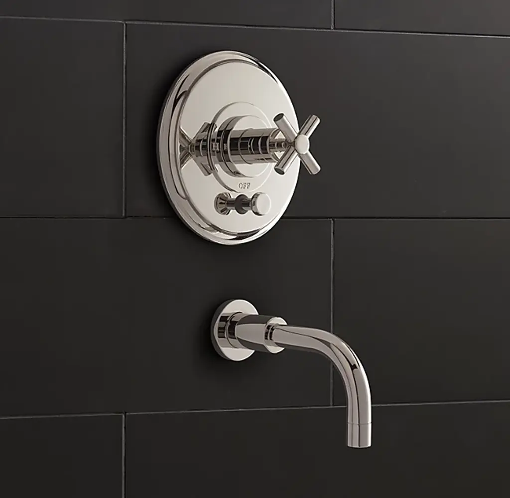 Sutton Cross-Handle Balanced-Pressure Tub & Shower Valve & Trim Set With Bath Spout