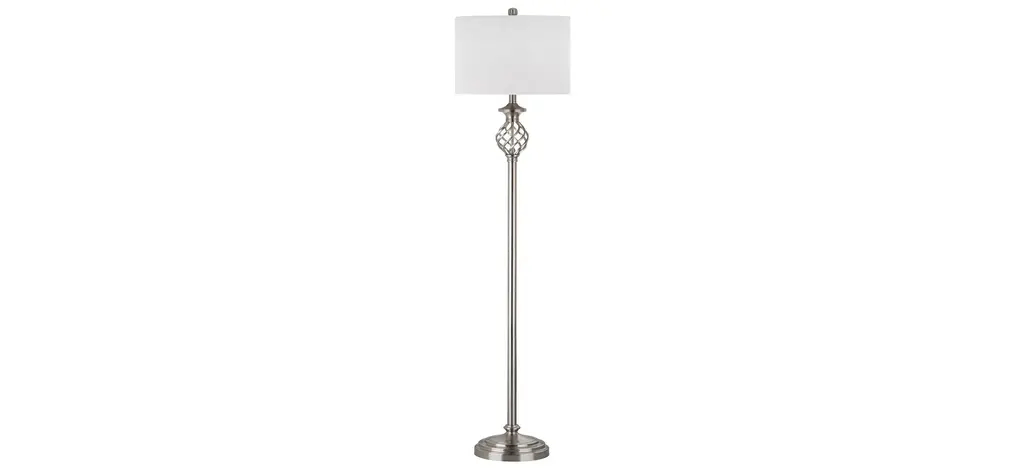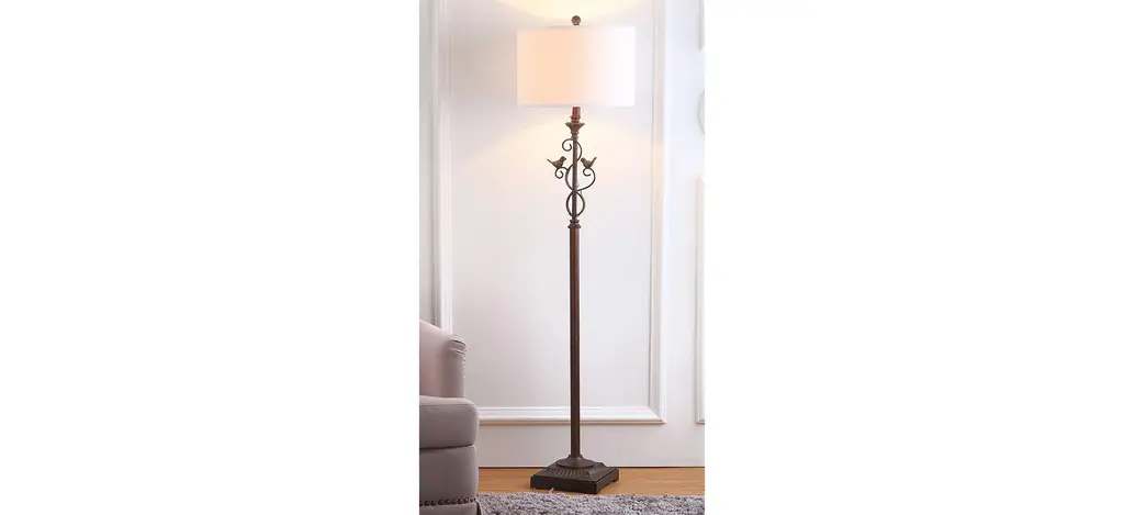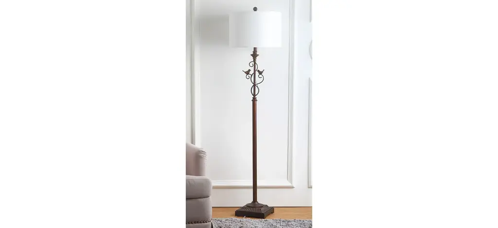 Inspired by the flora and fauna of classic British textiles, the sweet Suzie Floor Lamp is a traditional sculpted treasure. A metal base of oil rubbed bronze and white cotton drum shade lend natural beauty to any interior landscape.