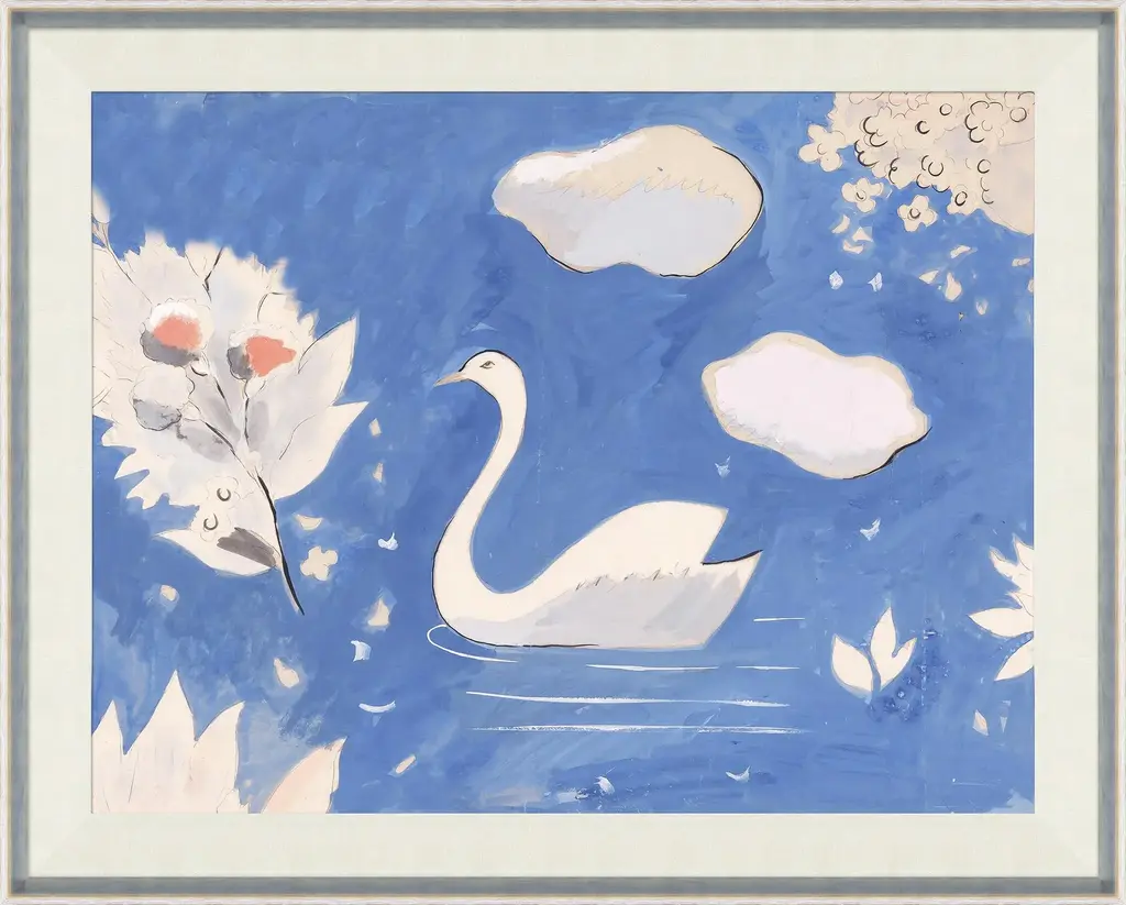 Swan In Lake Art Print In Silver Frame By Paule Marrot