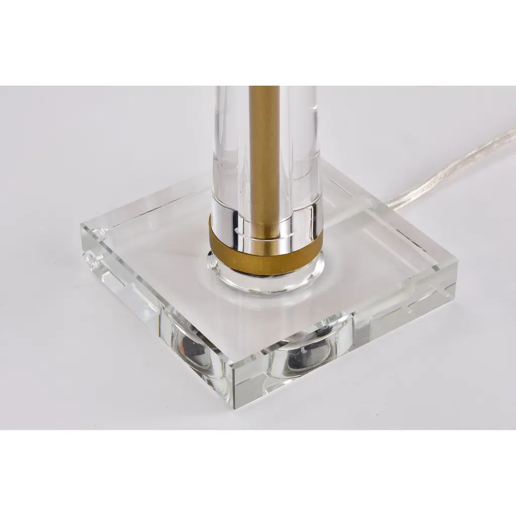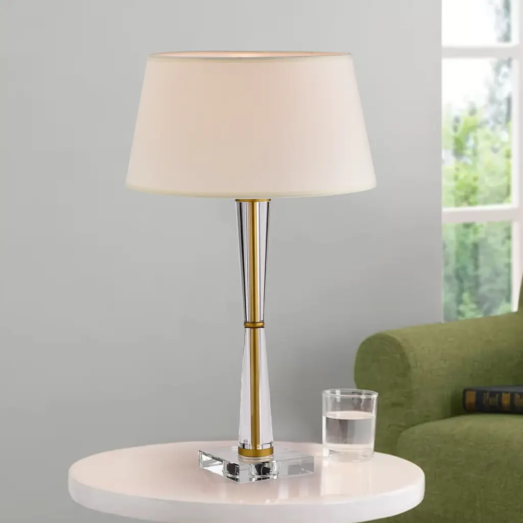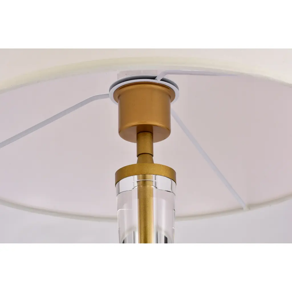 Description:Illuminate your desk or end table with this glamorous 1-light table lamp. The base is made of clear-cut crystal while the shade is made of fabric available in off-white color. It also features a matte gold metal rod that ensures the strength and durability of this table lamp. This lamp produce multi-directional illumination that will give you cozy and warm glow so you can read or work in comfortably lighting.Features:Dimensions: