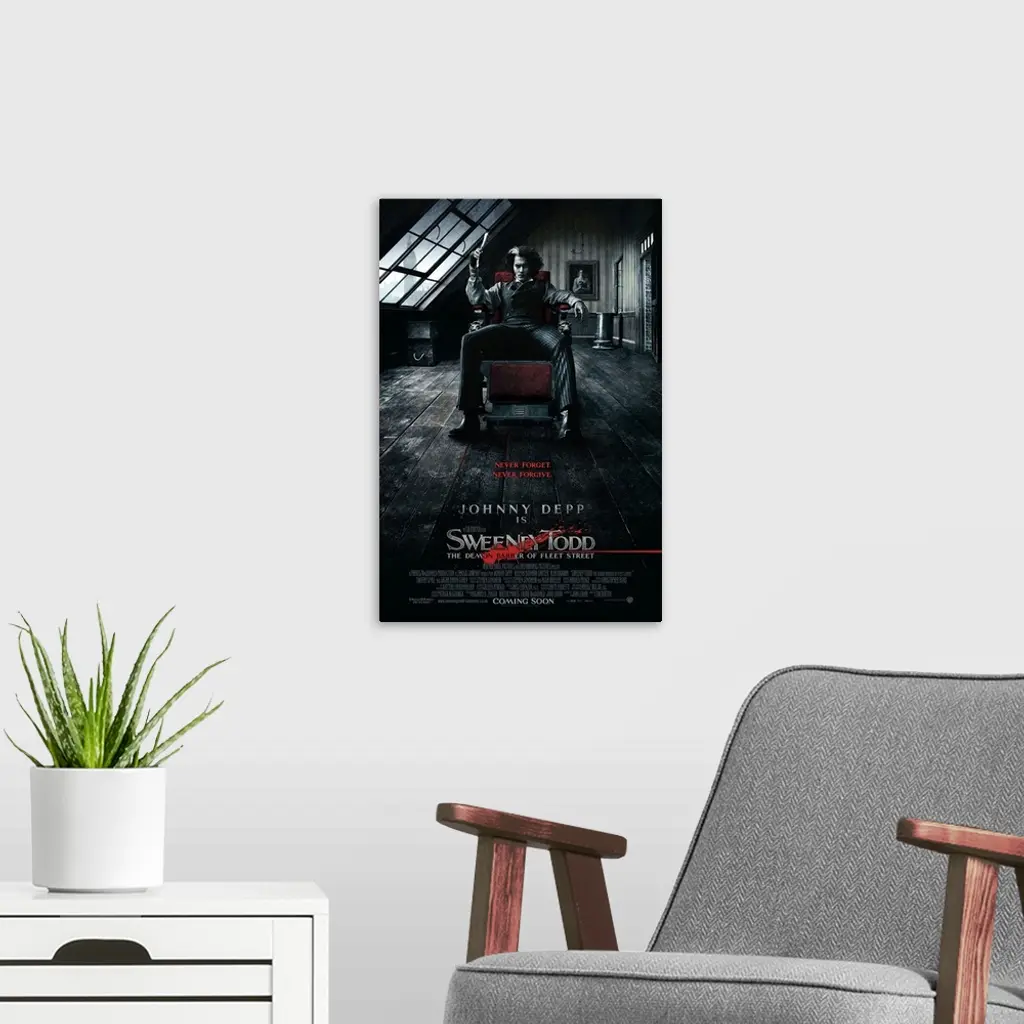 After hard years in exile for a crime he didn't commit, Benjamin Barker, now Sweeney Todd, returns to London to find his wife dead and his daughter in the hands of the evil Judge Turpin. In his anger, Sweeney goes on a murderous rampage on all London. With the help of Mrs. Lovett, he opens a barber shop in which he lures his victims with a charming smile before casually ending their lives with a flick of his razor across their necks. But not one man nor ten thousand men killed can satisfy Sweeney's lust for vengeance on those who've caused his years of pain.