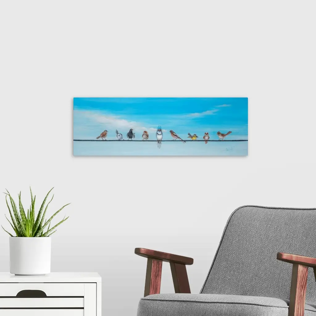 Sweet Birds On A Wire II wall art for home and office decor. Discover canvas art prints, photos, mural, big canvas art and framed wall art in GreatBigCanvas.com's varied collections.