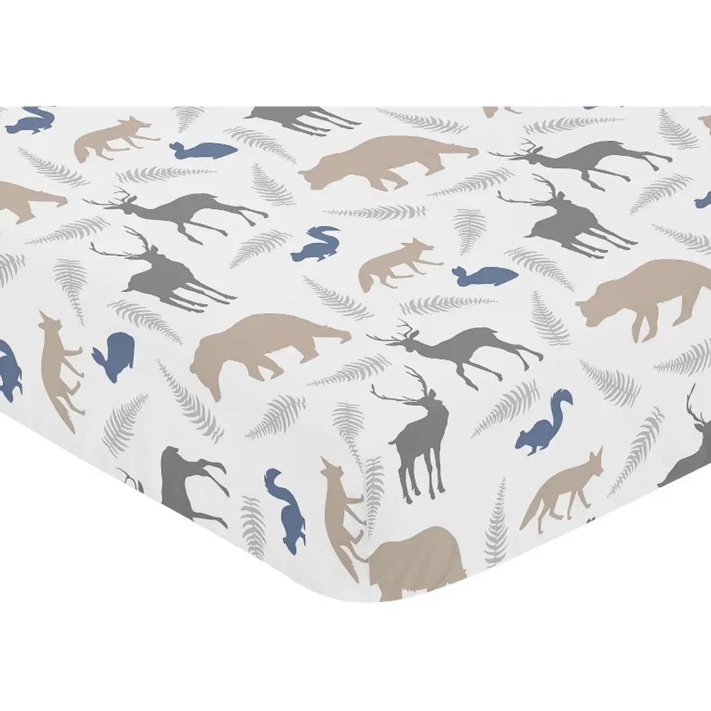 Sweet Jojo Designs Gender Neutral Unisex Baby Fitted Crib Sheet Woodland Animals Taupe Blue Grey