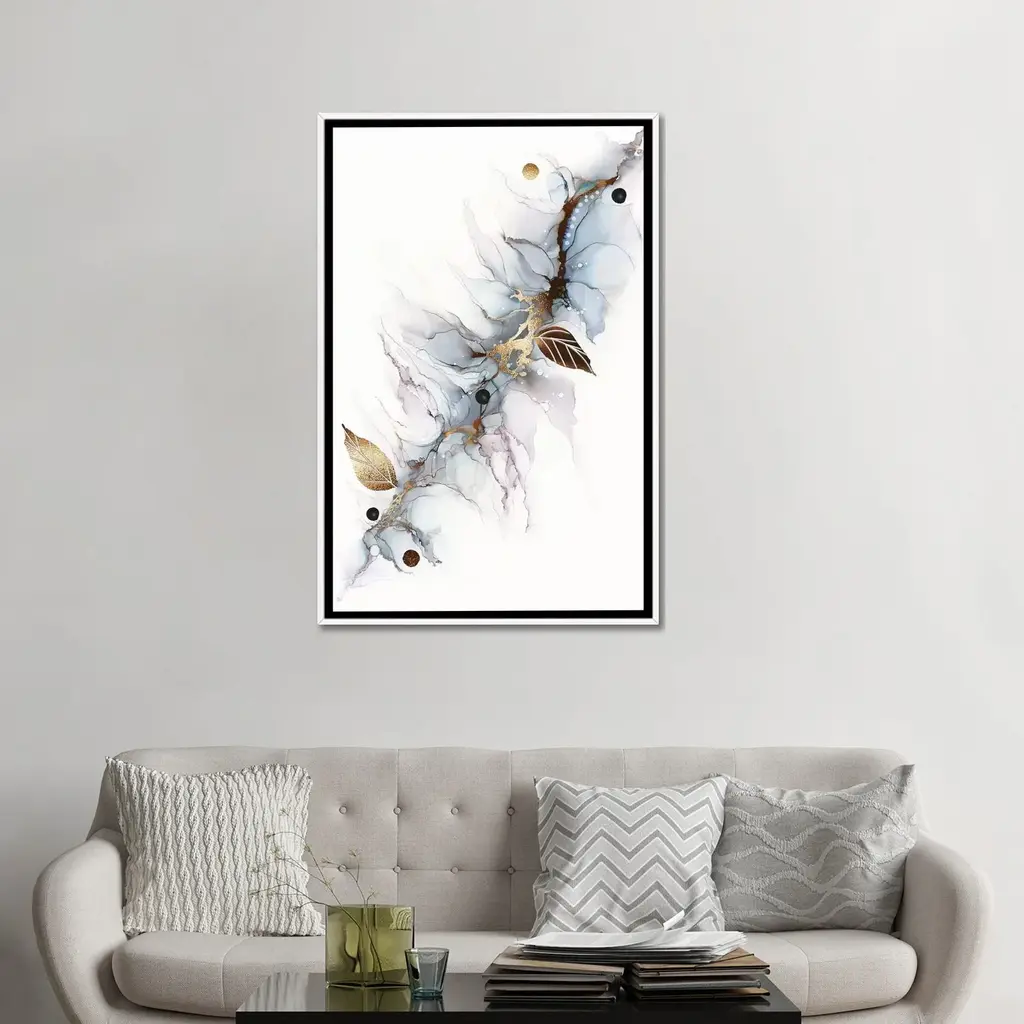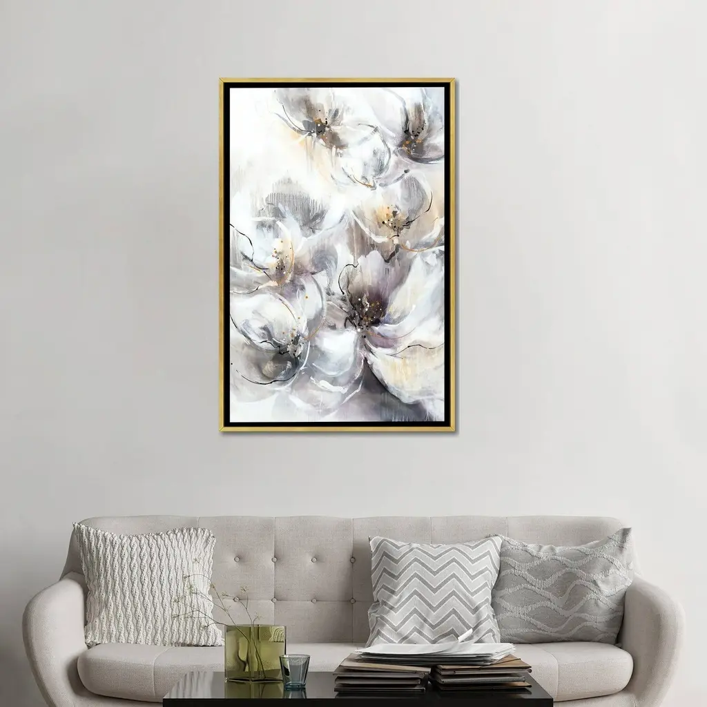 Gallery-wrapped canvas with hand-applied image brush gel.Set in a gold floater frame.